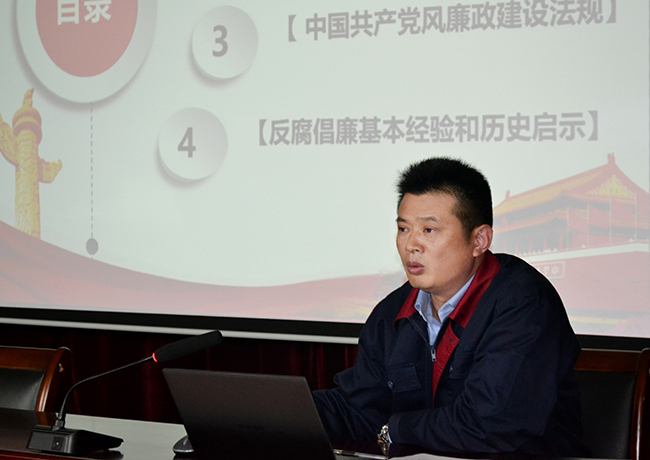 11月6日下午,杜鐘氨綸公司開展廉政黨課教育活動(dòng),黨委委員、紀(jì)委書記劉殿龍以《黨風(fēng)廉政建設(shè)永遠(yuǎn)在路上》為題,為公司黨員干部、全體管理人員上了一堂廉政黨課。