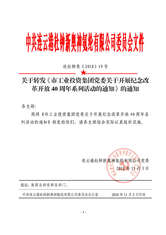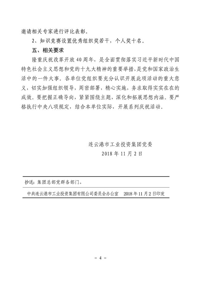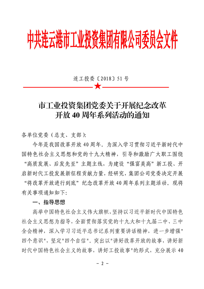 關(guān)于轉(zhuǎn)發(fā)《市工業(yè)投資集團黨委關(guān)于開展紀念改革開放40周年系列活動》的通知