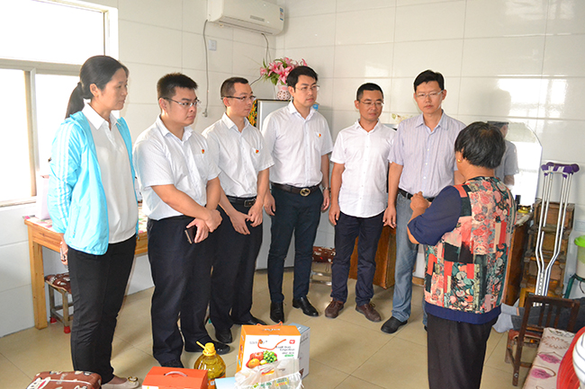“每逢佳節(jié)倍思親”。中秋前夕,為了讓社企共建單位范莊社區(qū)的貧困家庭渡過一個溫暖的節(jié)日,杜鐘氨綸公司攜手黨建共建單位“中國銀行開發(fā)區(qū)支行”在范莊焦書記的帶領(lǐng)下深入社區(qū)貧困戶家中,聆聽他們的傾訴,關(guān)心他們的生活,為他們送去生活用品和節(jié)日祝福。