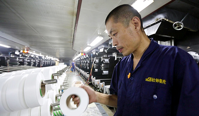 分段放流的問題解決沒多久,胡軍又對放流過程中形成的廢液打起了“主意”。因為這些廢液不僅不能使用,而且每噸還要花4千多元請外面的環(huán)保公司專門處理。要是有什么辦法能夠回收使用,是不是能夠變廢為寶呢?帶著這樣的疑問,他開始尋找回收廢液再利用的辦法。這個問題在那段時間里一直在腦海里不斷縈繞,他根據(jù)這兩種廢液的相關(guān)數(shù)據(jù),和同事們按照1:1的比例,倒入小型紡絲專用設(shè)備進(jìn)行循環(huán)混合一段時間后再紡絲,一開始的效果也不好,但是幾次調(diào)整后驚喜就發(fā)生了,混合形成的新原液不僅能紡絲,而且紡絲的質(zhì)量也遠(yuǎn)遠(yuǎn)超出了預(yù)期?,F(xiàn)在,用這兩種廢液為原料紡出來的絲每噸可賣到1萬元左右,又能回收廢液中的溶劑,完全實現(xiàn)了當(dāng)初變廢為寶的想法。
