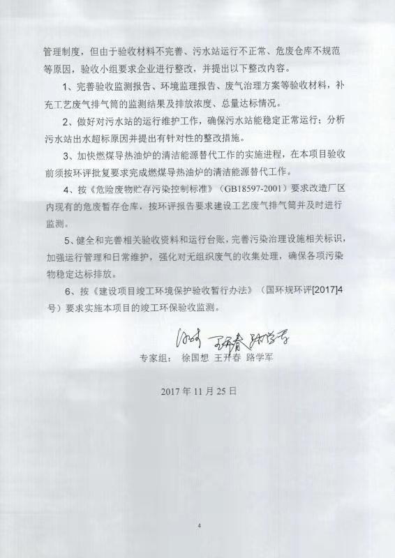 七期差別化無染氨綸纖維技改項目竣工環(huán)境保護自主驗收意見