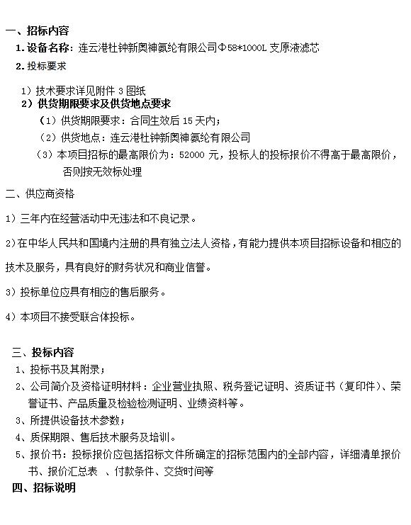 原液濾芯招標(biāo)文件