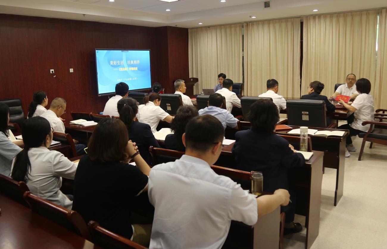 為進一步民法典學習宣傳教育走深走實,引領企業(yè)依法合規(guī)經(jīng)營,提升企業(yè)員工法治意識和法治理念,5月24日,公司邀請江蘇田灣律師事務所朱峻鋒律師進行專題講座,圍繞民法典的重要性、基本概況和基本原則、部分法條的理解與運用來展開。公司領導班子成員、廣大職工30余人參加本次活動。