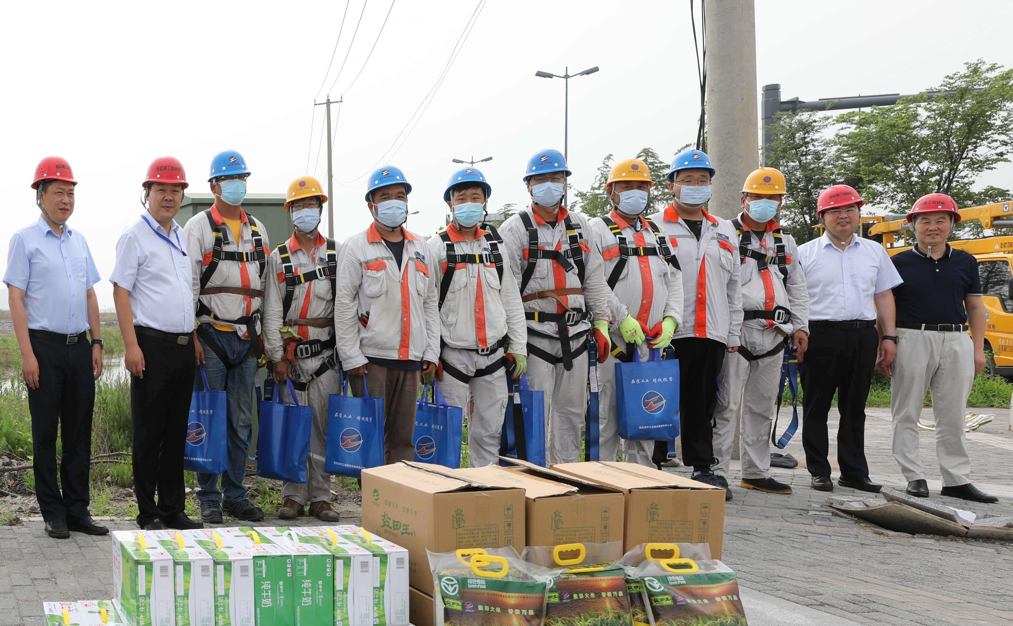 在臺(tái)北供電所工地現(xiàn)場(chǎng),集團(tuán)公司黨委副書記、工會(huì)主席戴鴻鳴對(duì)烈日下工作的職工給予了高度贊揚(yáng),并將慰問品送到職工的手中,將關(guān)愛送到大家的心坎上,并叮囑大家在做好疫情防控工作的同時(shí)做好防暑降溫工作,合理安排休息,注意勞逸結(jié)合,確保各項(xiàng)工作的正常運(yùn)行。