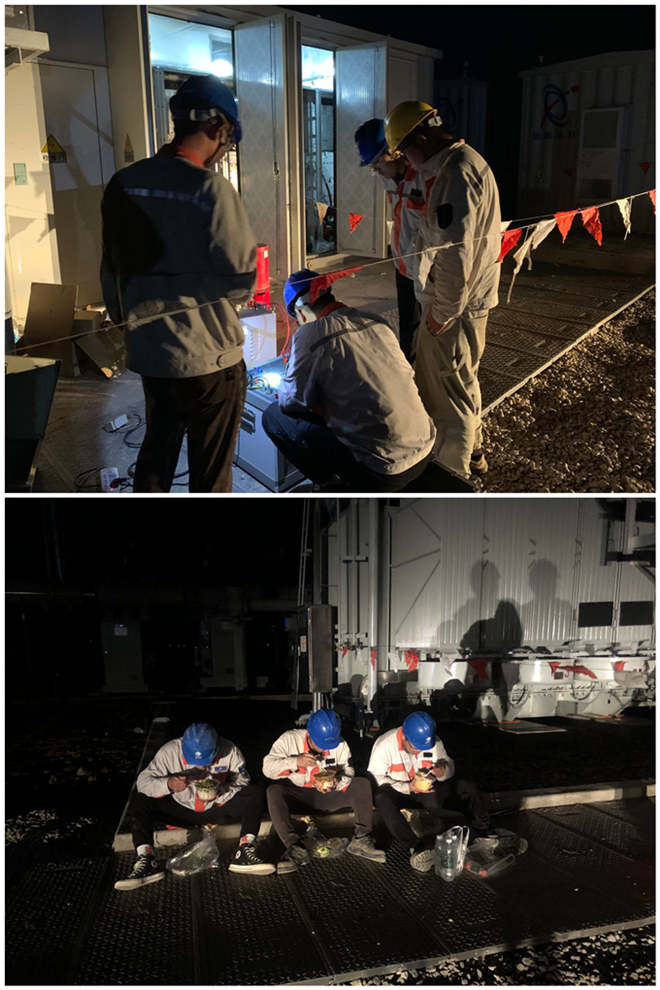 6月20日晚9點(diǎn),正在風(fēng)電施工現(xiàn)場忙碌的公司青年突擊隊(duì)突然接到業(yè)主緊急通知,今晚必須完成升壓站兩根電纜的電纜耐壓試驗(yàn)。為了不影響送電時(shí)間,按時(shí)完成工作任務(wù),青年突擊隊(duì)兵分兩隊(duì),一隊(duì)帶著設(shè)備去做電纜試驗(yàn),一隊(duì)繼續(xù)完成剩余工作任務(wù)。