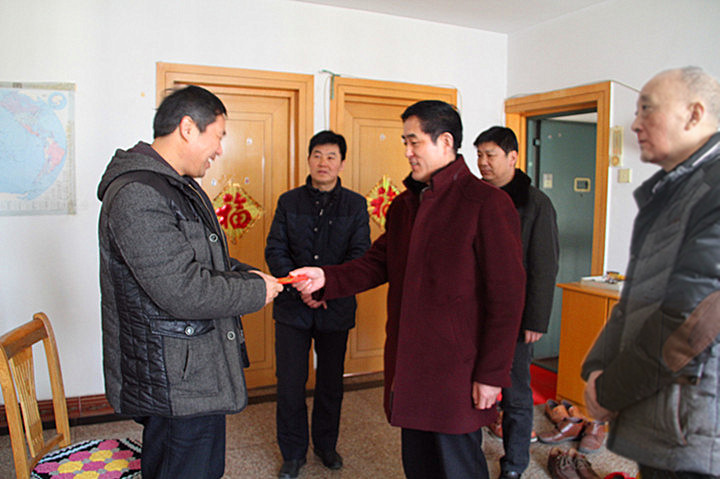 集團公司組宣處處長江舜軍,干部處副處長孫同慶和公司領(lǐng)導(dǎo)王志軍等陪同走訪慰問。﹙徐靜﹚