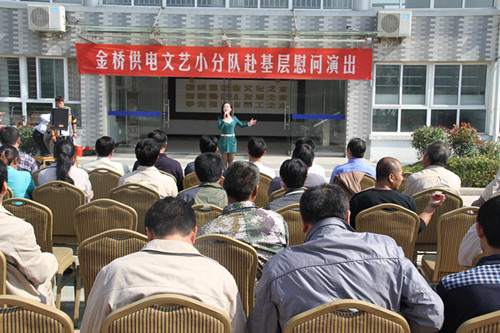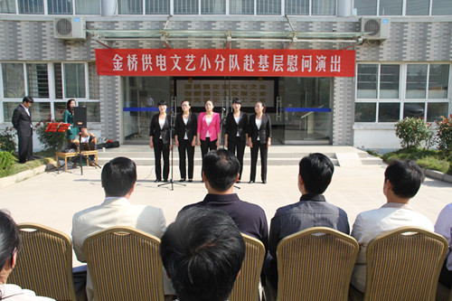 近日,為慶祝建國65周年,進一步踐行黨的群眾路線,豐富基層職工文化生活,公司工會組織文藝小分隊深入供電所等基層單位巡回慰問演出,為一線職工送去精彩紛呈的“文化大餐”,贏得了基層職工群眾一致好評。 在臨時搭建的舞臺上,文藝小分隊自編自演的的歌舞、相聲、詩朗誦、器樂彈唱等豐富多彩的節(jié)目,貼近基層,貼近生活,謳歌金橋供電十年成就,展示金橋供電職工風采,贏得了現(xiàn)場觀眾陣陣掌聲。中間還穿插了擊鼓傳花觀眾互動節(jié)目,基層職工踴躍參與,氣氛活躍。最后,演出在會場全體人員齊唱《歌唱祖國》中圓滿落下帷幕。 公司自成立以來,一直注重企業(yè)文化建設(shè),利用多種形式活躍基層文化生活,滿足員工多層次、多角度的精神需求。不僅加強基層單位“職工小家”建設(shè),建立了“職工書屋”、職工活動室、乒乓球室、羽毛球活動場地等基礎(chǔ)設(shè)施,還舉辦了職工運動會、籃球賽和文藝演出等活動。不僅發(fā)揮傳統(tǒng)職工文化活動的優(yōu)勢,而且還創(chuàng)新具有時代特色文化活動的形式,不斷增強員工的凝聚力和向心力。通過本次深入基層慰問演出,不僅為戰(zhàn)斗在一線的基層職工獻上一份精神“大餐”,同時也展示了金橋供電的良好作風和企業(yè)形象。(趙艷)