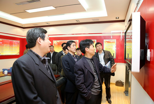 在公司四樓黨建一體化活動室,郝組長一行參觀了公司黨建一體化和群眾路線教育實踐活動成果展示,對我公司開展的群眾路線教育實踐活動予以充分肯定。同時,對公司利用現(xiàn)代媒體信息技術(shù)開展的電子黨建、網(wǎng)絡(luò)黨建也給與了高度評價。