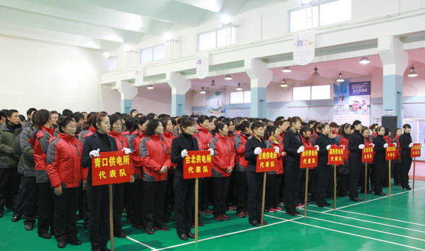 上午8時(shí),開幕式準(zhǔn)時(shí)開始。青口供電所代表隊(duì)、臺北供電所代表隊(duì)、臺南供電所代表隊(duì)、徐圩供電所代表隊(duì)、灌西供電所代表隊(duì)、農(nóng)場市場代表隊(duì)、淮鹽大酒店代表隊(duì)和公司機(jī)關(guān)代表隊(duì)等依次入場。他們振奮高昂,邁著鏗鏘的步伐整齊劃一地走向主席臺,彰顯了供電人團(tuán)結(jié)協(xié)作、勇于拼搏、開拓創(chuàng)新、積極進(jìn)取的精神。
