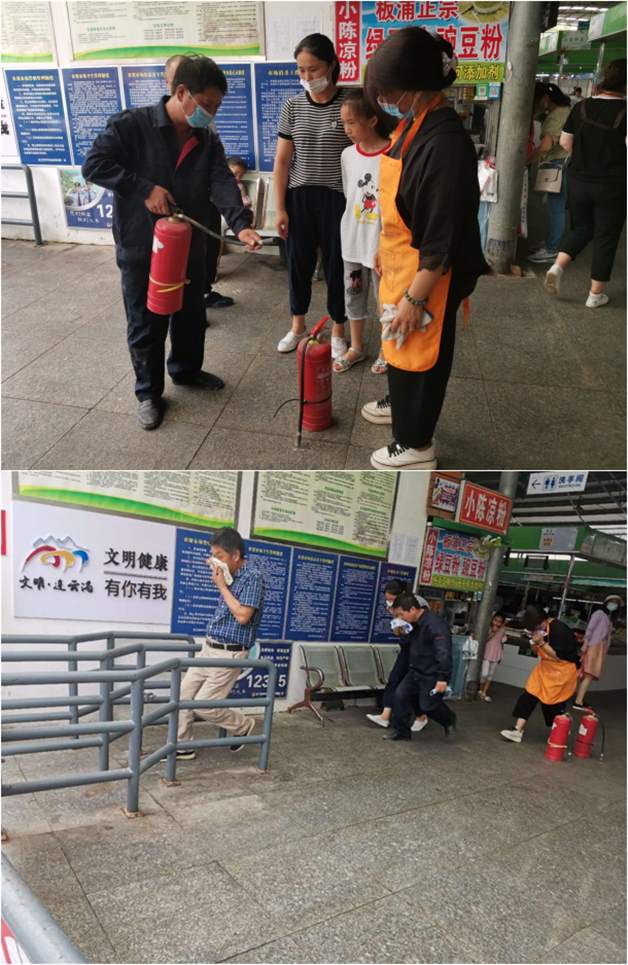 為了進一步加強廣大職工群眾消防意識,切實提高商戶對市場內火災的應急撲救處置能力,8月25日,巨龍農貿農貿市場舉辦了消防應急安全演練活動。演練前安全人員講解了有關火災現(xiàn)場的應急處置方案、滅火器的原理、基本操作方法及注意事項。