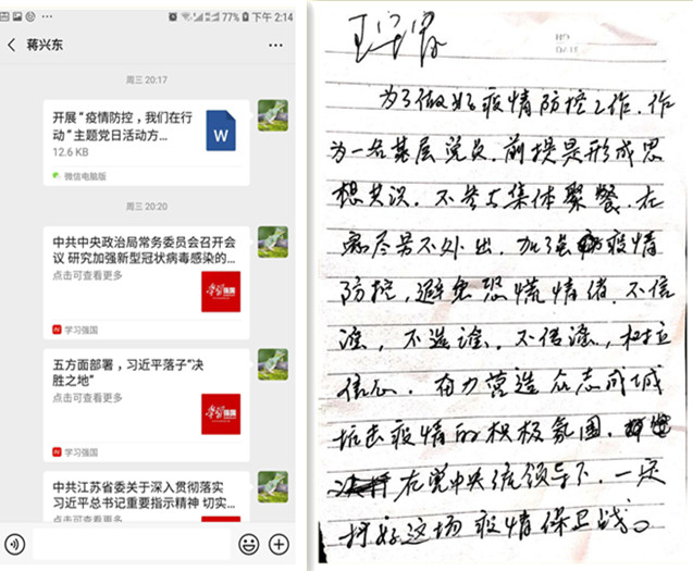 為了引導(dǎo)黨員統(tǒng)一思想認(rèn)識,凝聚思想共識,激發(fā)黨員做好疫情防控工作的思想自覺和行動自覺。2月12日,臺南供電所通過微信方式組織開展了“疫情防控,我們在行動”主題黨日活動。在微信平臺上,黨員們共同學(xué)習(xí)了《中共中央政治局常務(wù)委員會召開會議研究新型冠狀病毒感染的肺炎疫情防控工作 》、《五方面部署,習(xí)近平落子“決勝之地”》、《江蘇省委常委會召開會議進(jìn)一步把疫情防控工作做實(shí)做細(xì)做到位》重要指示精神;同時(shí),開展了“我為疫情防控出份力”活動,全體黨員暢談疫情防控體會和做法。黨員王守富在活動中表示,作為一名基層黨員,前提是形成思想共識,不參與集體聚餐,在家盡量不外出,不信謠、不傳謠,樹立信心奮力營造眾志成城抗擊疫情的積極氛圍,在黨中央統(tǒng)一領(lǐng)導(dǎo)下,一定能打好疫情防控保衛(wèi)戰(zhàn)。(劉繼美)
