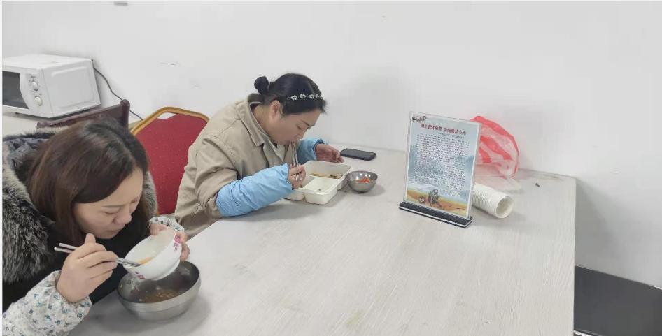 為制止餐食浪費,徐南供電所率先響應(yīng)、積極行動,營造勤儉節(jié)約意識,該所實行節(jié)約三步走。第一步每天按照預(yù)估16人就餐量采購食材,第二步按照實際就餐人員人數(shù)進行加工食材,多余食材留至下一頓再加工,第三步職工按照自己的實際需求量打餐,做到吃多少打多少,不夠吃再打,杜絕浪費。同時,生熟食分開存放和加工,添加公筷公勺、實行分餐制,合理膳食、葷素搭配、營養(yǎng)平衡,踐行健康飲食。(劉繼美)