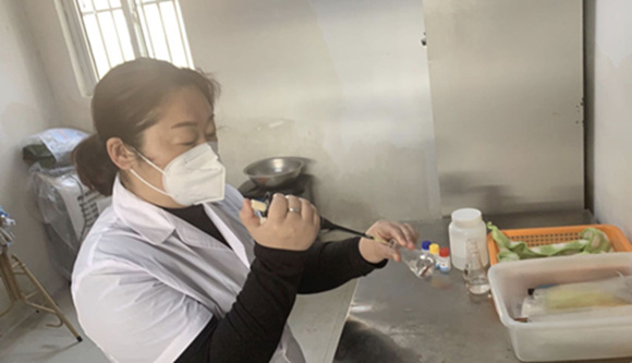 “疫情期間,每天都要隨機(jī)選取攤位進(jìn)行取樣,對(duì)蔬菜、水果、生鮮肉類、干制品等的農(nóng)藥殘留、非法添加物、濫用添加劑等進(jìn)行檢測(cè),檢測(cè)項(xiàng)目涵蓋常見的食用農(nóng)產(chǎn)品風(fēng)險(xiǎn)項(xiàng)目,俗話說民以食為天,所以一定把好群眾的‘入口’關(guān),讓居民吃得放心,這樣我的工作才有價(jià)值?!币咔榉揽孛钕逻_(dá)后,陸麗麗同志被巨龍農(nóng)貿(mào)市場(chǎng)服務(wù)中心安排負(fù)責(zé)市場(chǎng)內(nèi)的農(nóng)產(chǎn)品檢測(cè)工作,她放棄春節(jié)節(jié)假日休息,即刻上陣,每日對(duì)市場(chǎng)攤位農(nóng)產(chǎn)品進(jìn)行抽檢,全力把好入市食用農(nóng)產(chǎn)品質(zhì)量關(guān),維護(hù)銷售環(huán)節(jié)食用農(nóng)產(chǎn)品消費(fèi)安全。