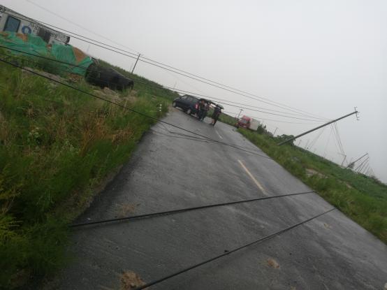 8月12日,連云港普降大到暴雨,徐圩新區(qū)徐新公路附近出現(xiàn)了龍卷風(fēng)等突發(fā)強(qiáng)對(duì)流天氣,導(dǎo)致供電局18根電線桿斷桿,2臺(tái)開關(guān)遭雷電擊穿,35KV線路停電。臺(tái)南供電所轄區(qū)張圩小區(qū)、幸福家園道路沿線也遭受到不同程度的破壞,現(xiàn)場(chǎng)2根電線桿斷裂、多根電桿傾斜、架空導(dǎo)線掉落地上,道路交通一度癱瘓。