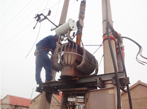 連日來,天氣持續(xù)高溫,用電負(fù)荷也隨之加大,轄區(qū)原有設(shè)計(jì)的供電線路及變壓器容量已不能滿足居民生活用電的需求,供用電矛盾日益突出。特別是4號變壓器供電區(qū)域大、容量小,已嚴(yán)重危急到供電質(zhì)量和供電安全運(yùn)行。為此,所領(lǐng)導(dǎo)決定將原有的160KVA變壓器更換為250KVA變壓器。為了避開高溫時(shí)斷,大家起早作業(yè),但還是忙的汗流浹背。他們顧不上休息,加快設(shè)備更換速度,終于在上午八點(diǎn)前完成更換任務(wù),恢復(fù)供電。(王志勇)