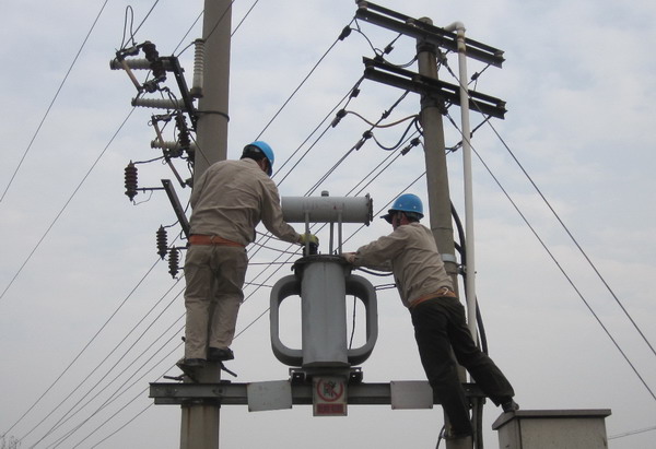 圖為該所職工在黃下線養(yǎng)殖場公變進(jìn)行檢修 近期,青口供電所在公司抽調(diào)精兵強(qiáng)將以決戰(zhàn)利海110KV變電站工程、所里人力十分緊張的情況下,合理進(jìn)行人力調(diào)配,組織職工加班加點(diǎn),對供電設(shè)備全面進(jìn)行檢修,確保秋冬季節(jié)設(shè)備安全供電。(宋中文)