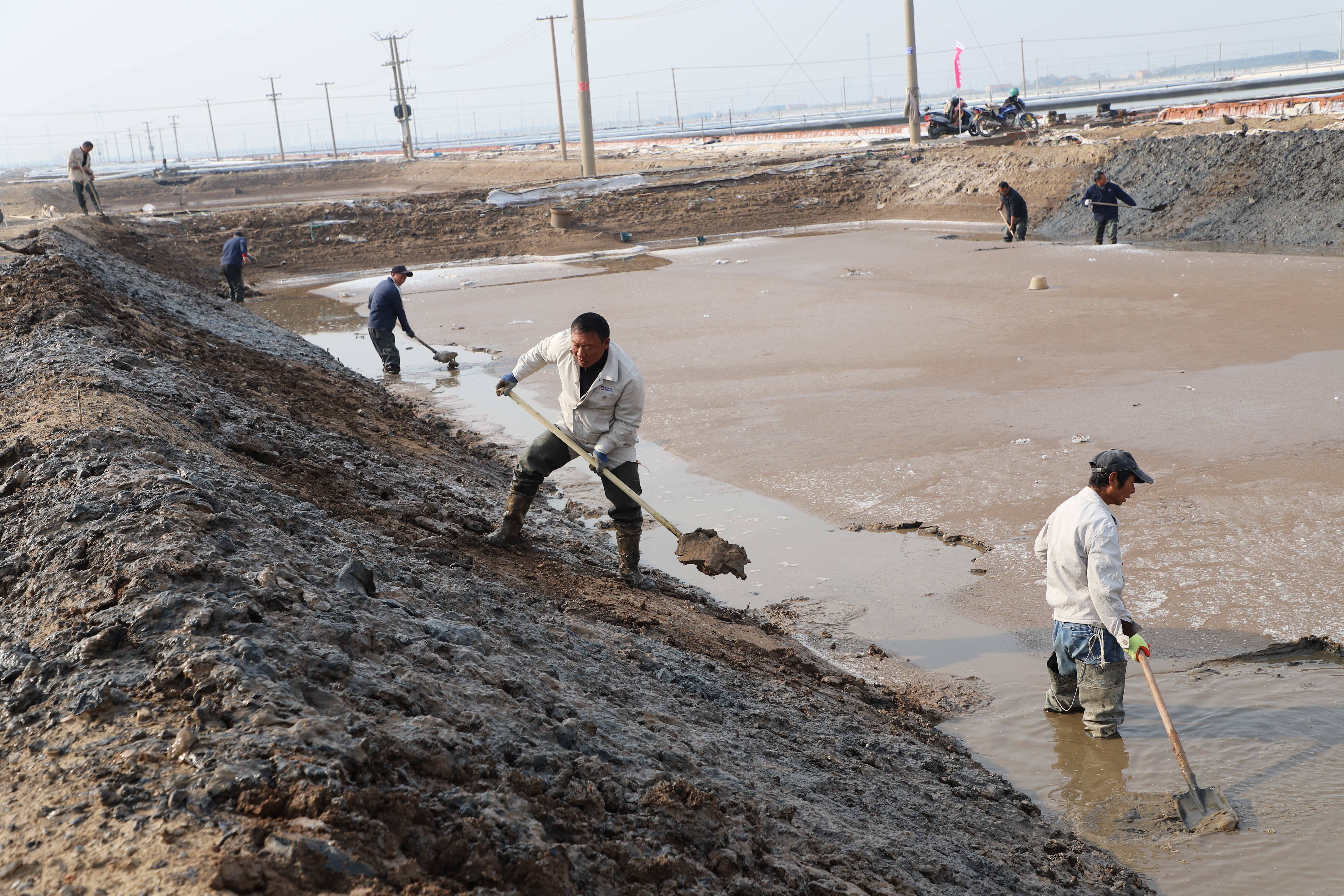 寒冬時節(jié),暖陽之下,鹽廩之旁,曬得黝黑的鹽場產(chǎn)業(yè)工人們按照競賽的考核標(biāo)準(zhǔn),做熟泥、打堰墻、做堰頂,護(hù)埝頂、夯埝坡、清塘底,見證了一場技能比拼的盛會。經(jīng)過一天的鏖戰(zhàn),盧正兵、靳新邦、匡洪忠?guī)熗饺〉昧顺匮咝拚那叭?;林樹軍、潘成軍、胡繼華師徒取得了土塘清淤的前三名。(西工)