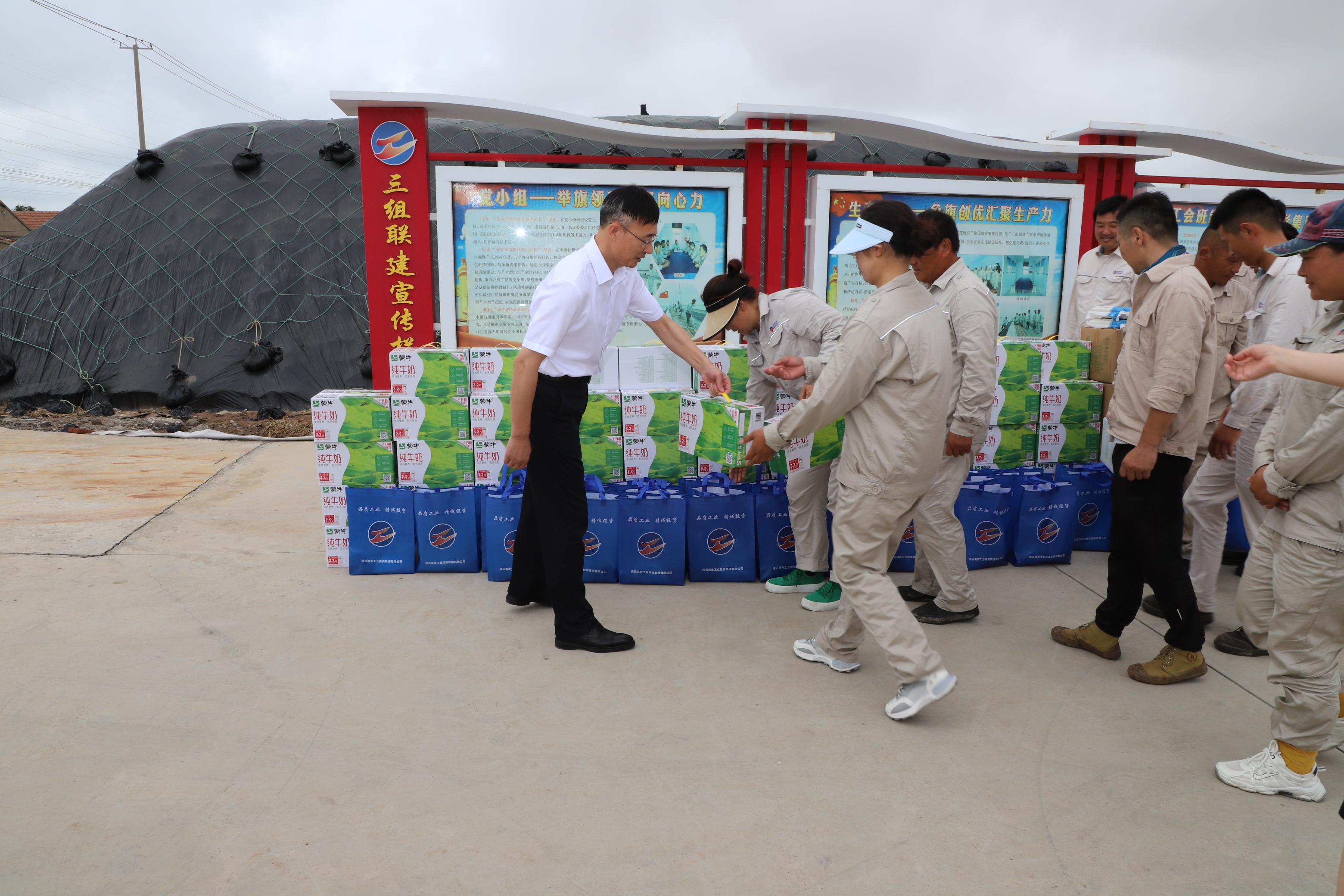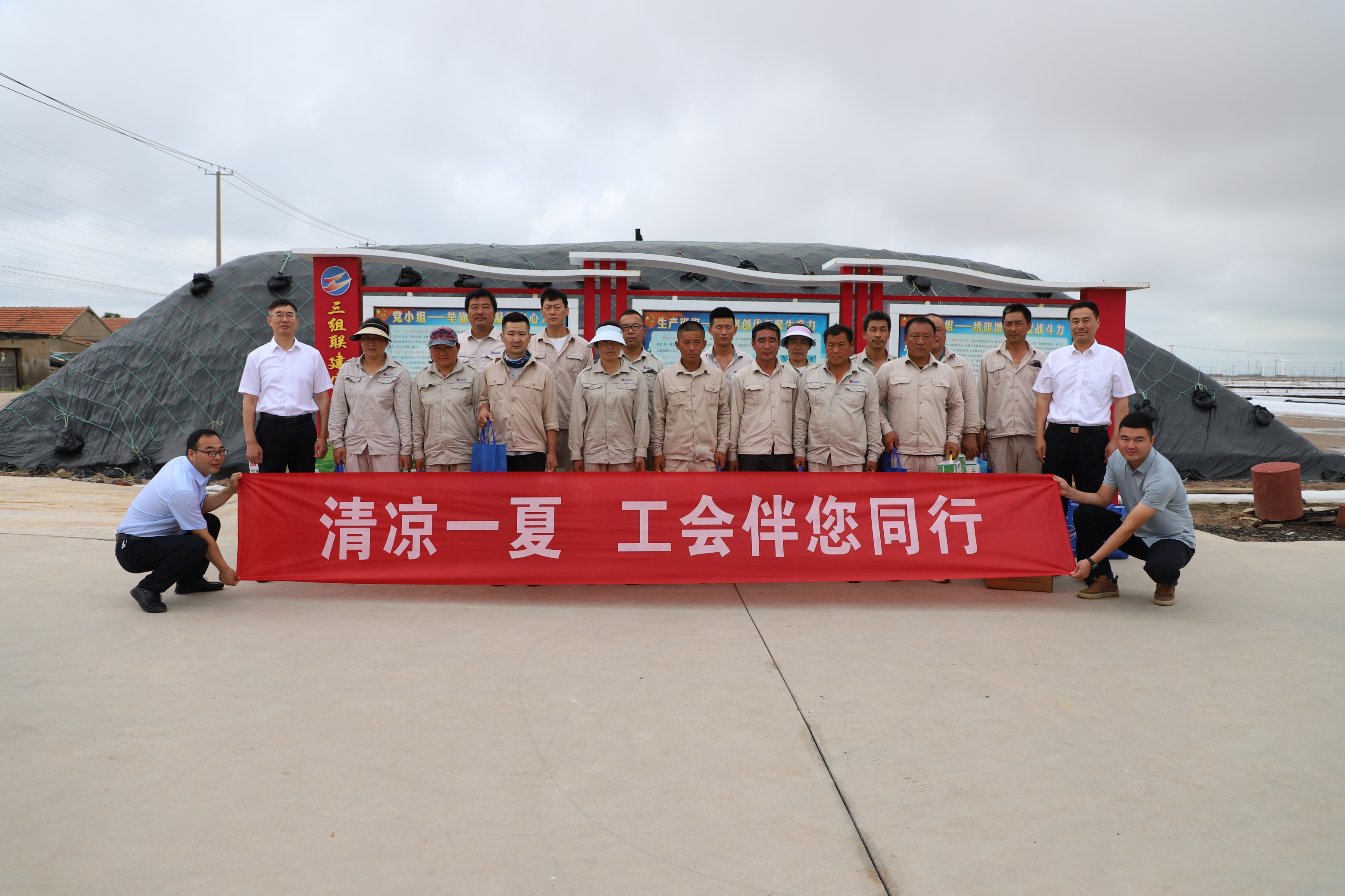“高溫天氣,大伙兒一定要注意勞逸結合?!薄案兄x大家的辛勤付出,這些防暑物品僅是我們的一點心意?!睆埩忠恍衼淼饺諘裰汽}新河分公司八班灘頭,為他們送去綠豆、白糖等慰問品。一聲問候、幾句家常,緩解了鹽工們的疲憊,讓他們感受到了實實在在的溫暖。
