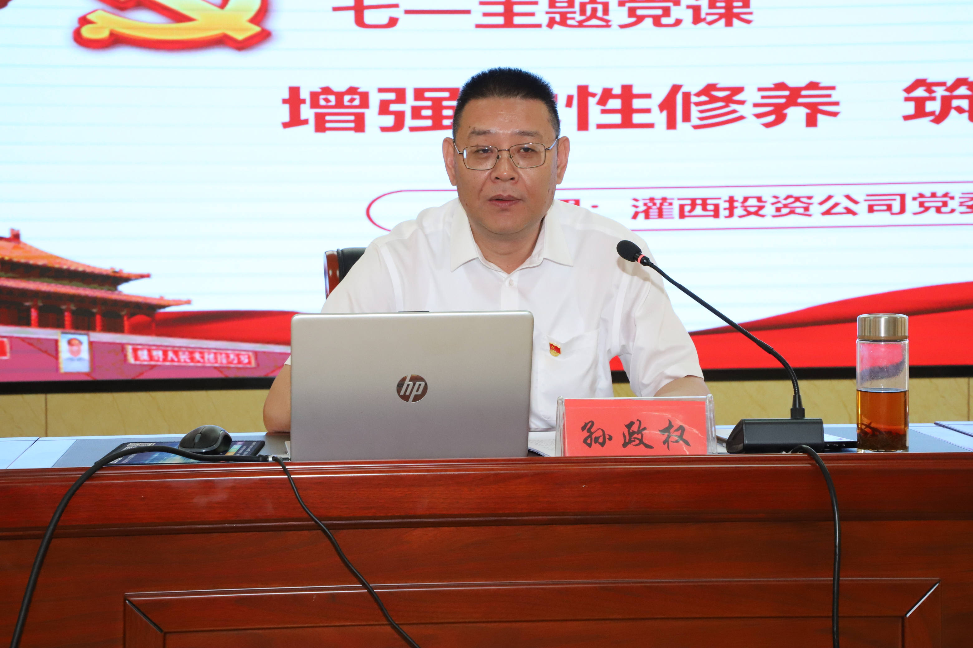 為深入學(xué)習(xí)貫徹黨的二十大精神,熱烈慶祝中國共產(chǎn)黨成立102周年,6月30日上午,灌西投資公司黨委舉辦慶祝建黨102周年專題黨課暨表彰大會,公司領(lǐng)導(dǎo)班子成員、各單位副職級以上黨員、機關(guān)全體黨員、預(yù)備黨員、受表彰人員及特邀華能熱電公司黨員參加會議,公司黨委副書記、工會主席王宏主持會議。