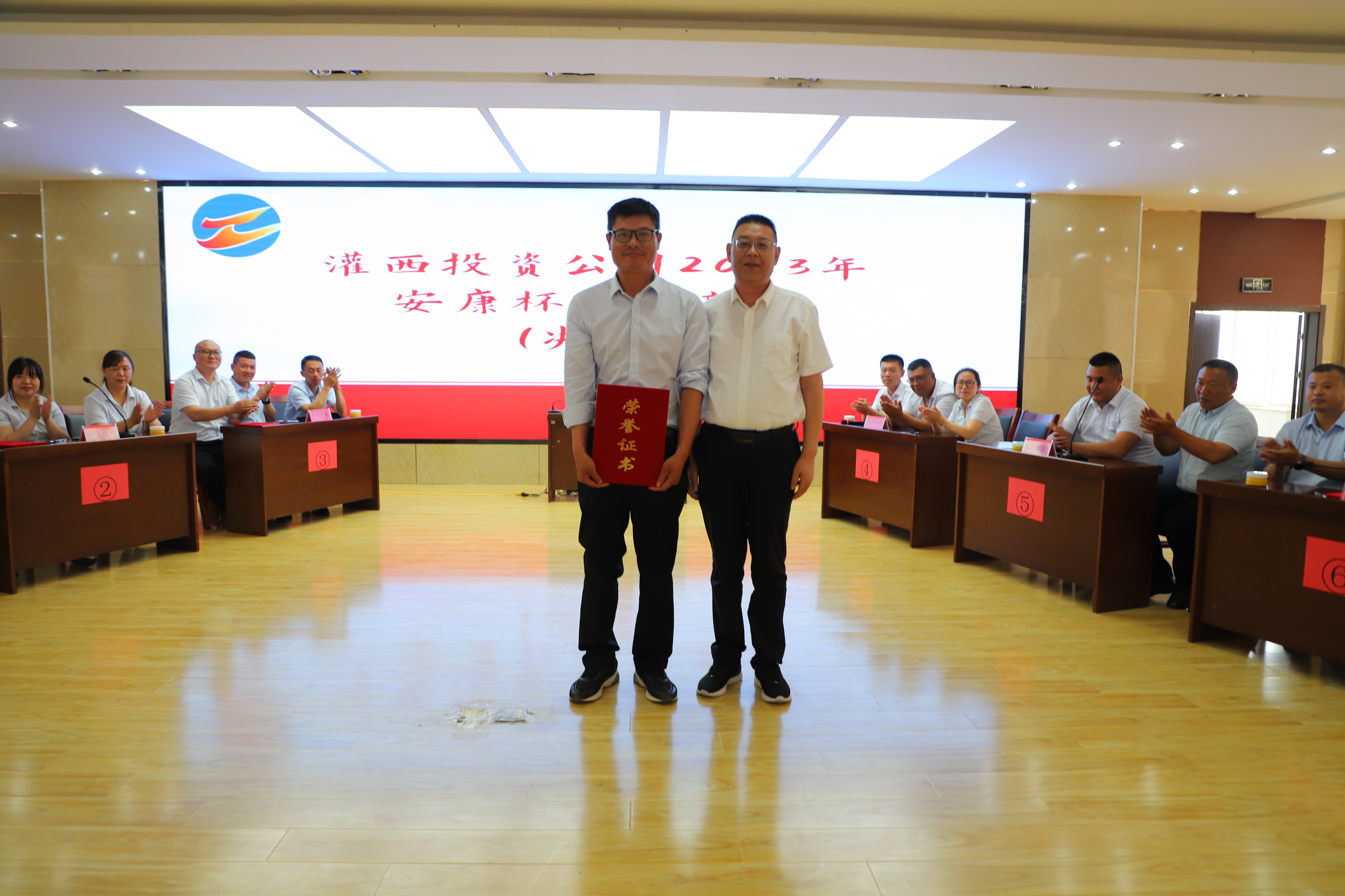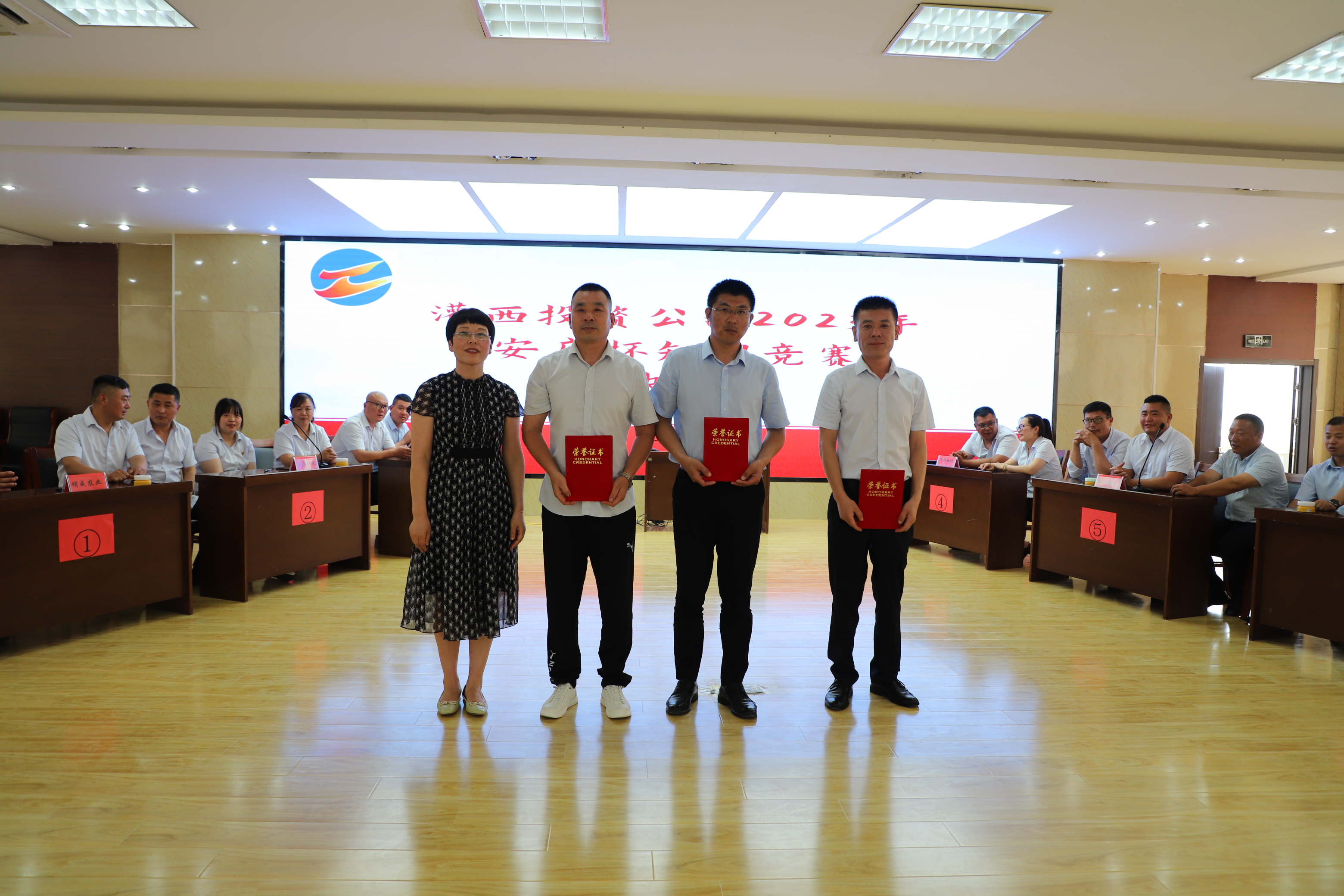 經(jīng)過激烈比拼,新河制鹽分公司獲得一等獎,南翼綠化公司、資源管理中心獲得二等獎,宵洋物流公司、生產(chǎn)服務(wù)公司、明威農(nóng)業(yè)公司獲得三等獎。公司領(lǐng)導(dǎo)為獲獎單位頒獎。