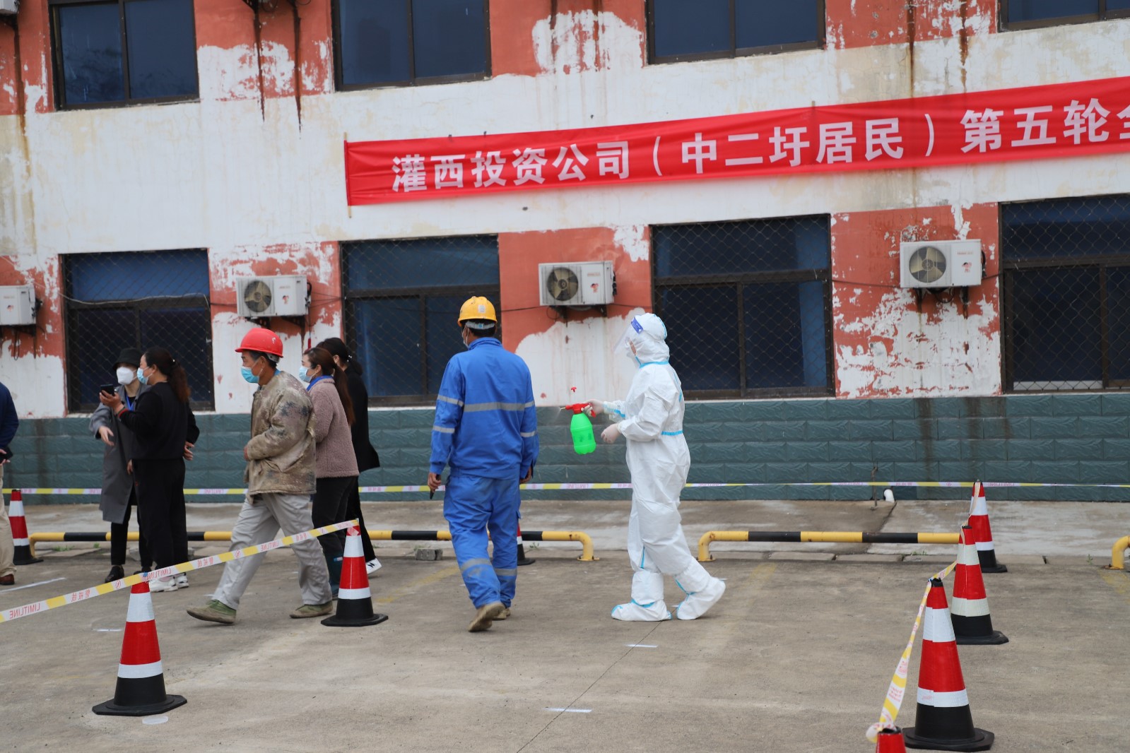 為了配合做好這一輪的全民核酸檢測(cè)工作,從核酸檢測(cè)前期的場(chǎng)地準(zhǔn)備到居民隊(duì)伍的秩序維持,從協(xié)助醫(yī)護(hù)人員做好消毒、信息錄入到現(xiàn)場(chǎng)管理,灌西投資公司廣大志愿者奮勇上前,全過程參與其中。由于之前天氣有雨,早在凌晨3點(diǎn)多鐘,公司志愿者們就來到現(xiàn)場(chǎng)部署核酸檢測(cè)場(chǎng)地,及時(shí)做好設(shè)置隔離區(qū),劃出一米線等工作,確保了早上5點(diǎn)半點(diǎn)準(zhǔn)時(shí)開始檢測(cè)。