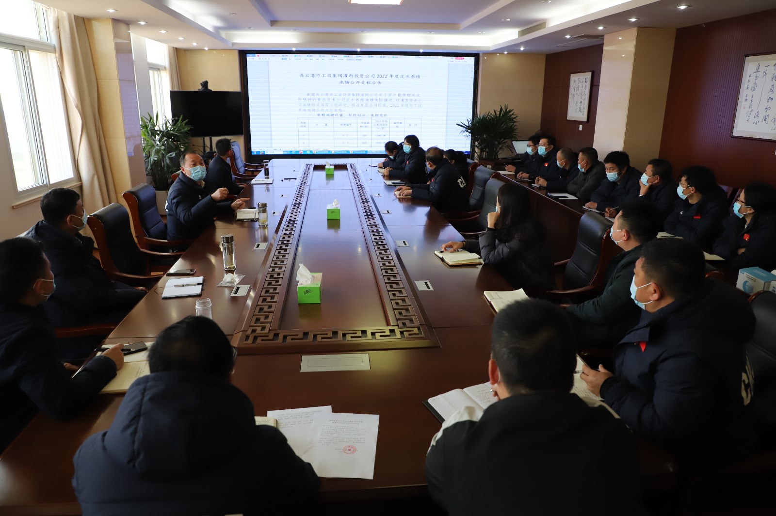 3月26日上午,灌西投資公司在機關(guān)三樓會議室召開2022年度池塘租賃領(lǐng)導(dǎo)小組(擴大)會議,公司黨委書記、董事長、總經(jīng)理李國文、常務(wù)副總經(jīng)理吳衛(wèi)平、總經(jīng)理助理潘二衛(wèi)、陳寬樓及各工作組組長、部分工作人員參加會議。