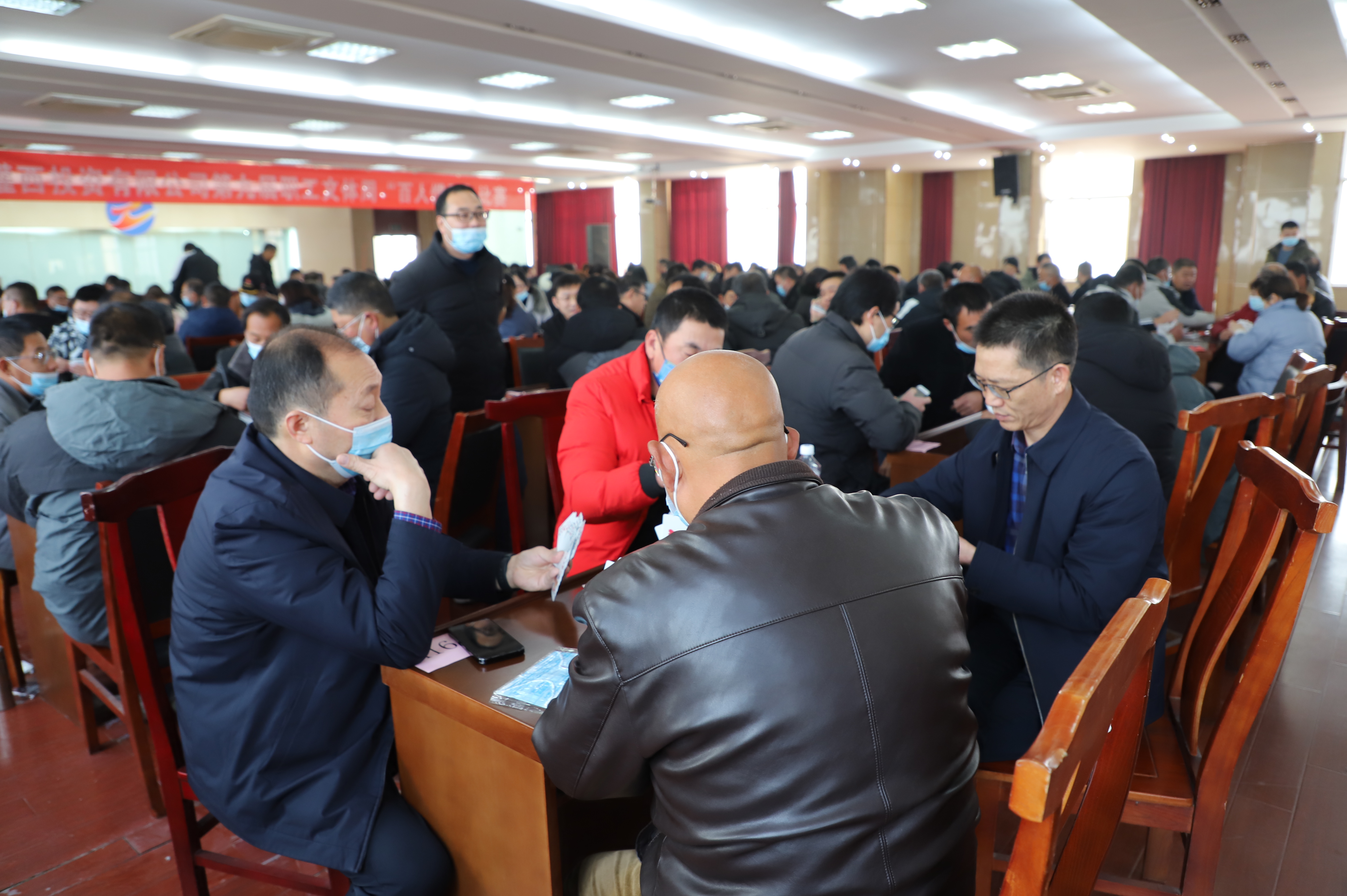 12月23日,灌西投資公司第九屆職工文體周摜蛋比賽在機關(guān)五樓進行,本次摜蛋比賽活動共計88對176名棋牌愛好者報名參加,為保證本次活動的公平公正,參賽人員采用分A、B組的方式,每個小組取前8名進入下一輪比賽;參賽選手經(jīng)過3輪比賽后,獲勝的5對選手直接進入下一輪比賽,在輪空選手和5名敗方選手中取3名進入下一輪比賽,3名獲勝者進入下一輪比賽;進入16強的選手,采用抽簽方式確定比賽選手和順序,取前8名進入下一輪比賽;進入前8強的選手按對陣秩序依次決勝取出前八名;在淘汰的8名選手中按對陣秩序取出9、10名。