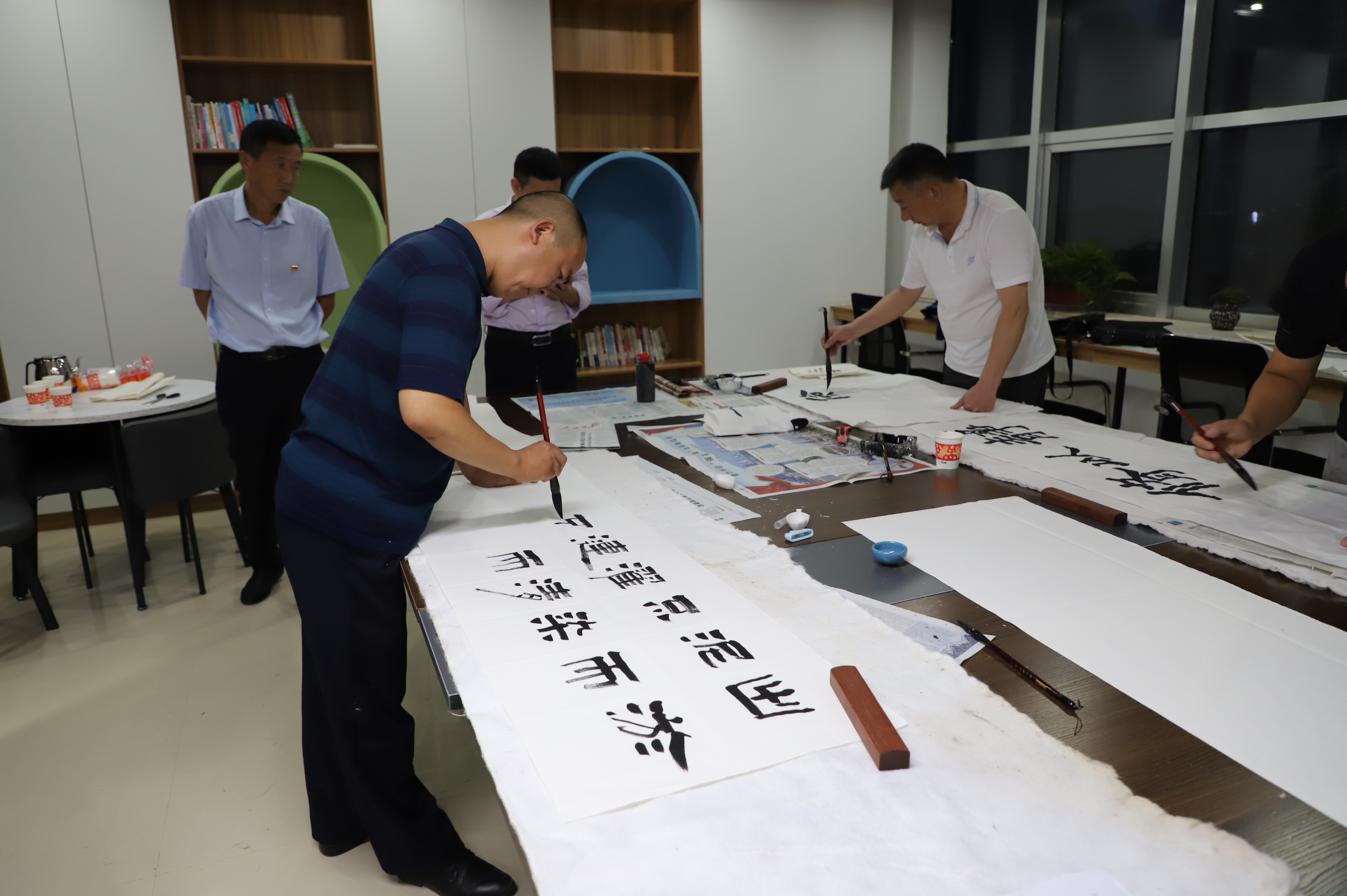 書畫筆會邀請縣書畫家協(xié)會的6名成員到場潑墨揮毫,以圍繞“迎國慶慶祝建黨百年”為主題,書寫愛黨華章,歌頌黨的百年光輝歷程,著力引導(dǎo)黨員干部“守初心、踐使命”。
