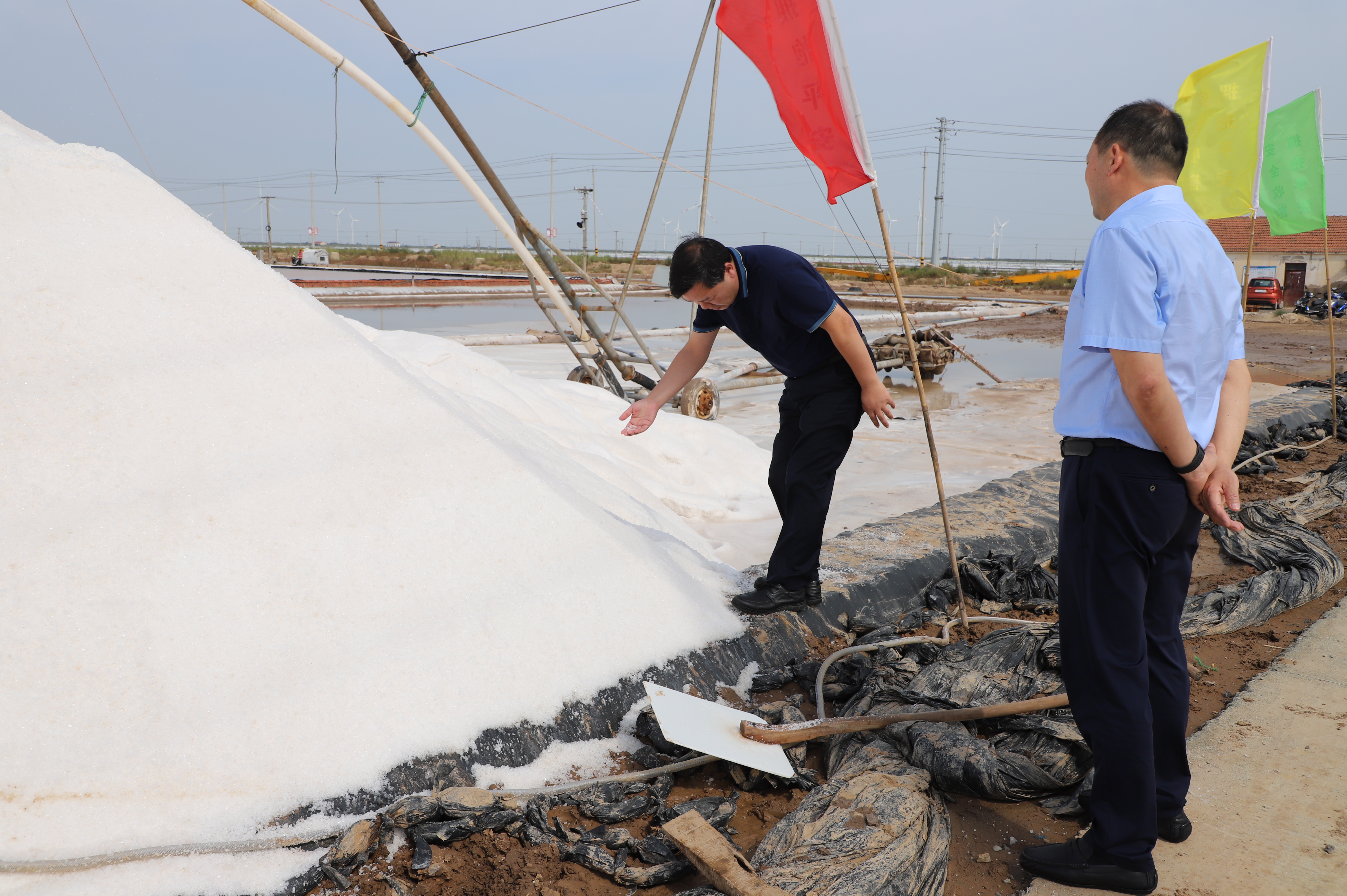 調(diào)研組一行先到新河十三班參觀現(xiàn)場扒鹽,李國文董事長向調(diào)研組一行介紹了目前日曬制鹽公司采用的帶鹵扒鹽技術(shù),并就目前鹽業(yè)生產(chǎn)、運(yùn)輸、銷售等情況進(jìn)行了簡單的介紹。
