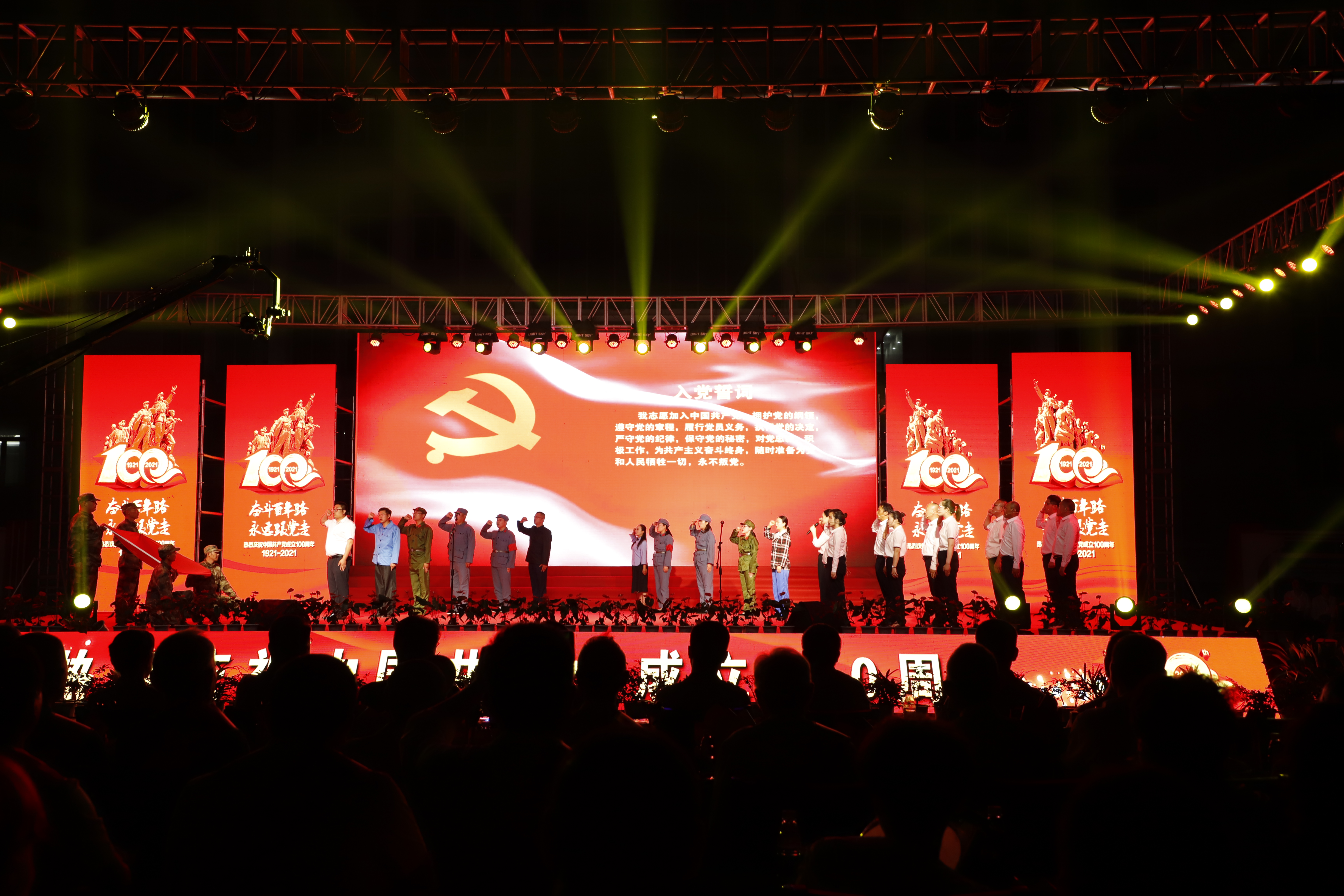 百年征程路漫漫,燦爛輝煌激人心,是中國(guó)共產(chǎn)黨指給了人民解放的道路,領(lǐng)導(dǎo)中國(guó)走向光明,是中國(guó)共產(chǎn)黨引領(lǐng)中華民族走向復(fù)興之路,奮進(jìn)新時(shí)代、開(kāi)啟新征程,最后,全場(chǎng)人員同唱《沒(méi)有共產(chǎn)黨就沒(méi)有新中國(guó)》,10面國(guó)旗、10面黨旗在揮舞,整個(gè)舞臺(tái)成為一片紅的海洋,整場(chǎng)晚會(huì)圓滿(mǎn)落下帷幕。