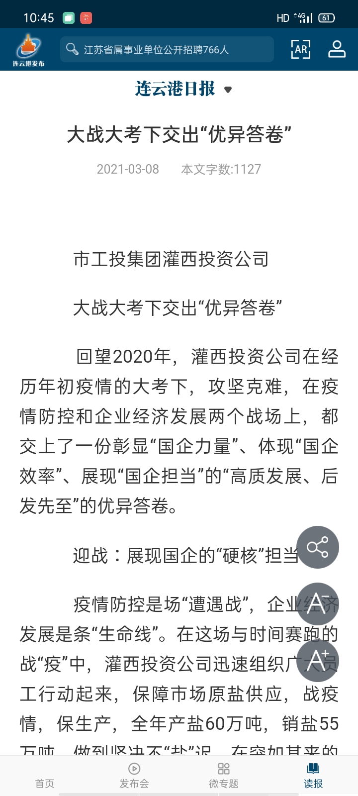 疫情防控是場“遭遇戰(zhàn)”,企業(yè)經(jīng)濟發(fā)展是條“生命線”。在這場與時間賽跑的戰(zhàn)“疫”中,灌西投資公司迅速組織廣大員工行動起來,保障市場原鹽供應,戰(zhàn)疫情,保生產(chǎn),全年產(chǎn)鹽60萬噸,銷鹽55萬噸,做到堅決不“鹽”遲。在突如其來的疫情大考面前,通過在“家門口”搭建招聘平臺,“點對點”推送用工信息,為應聘人員“量身”定崗,招聘因疫情管控失業(yè)人員83人,同時為臨港產(chǎn)業(yè)區(qū)輸送轉(zhuǎn)崗職工70余人,讓因疫情管控還沒有出門打工的灌西社區(qū)本地人員在家門口上班,穩(wěn)住了復工復產(chǎn)的“陣腳”,以“硬核”擔當,護航企業(yè)經(jīng)濟復蘇。