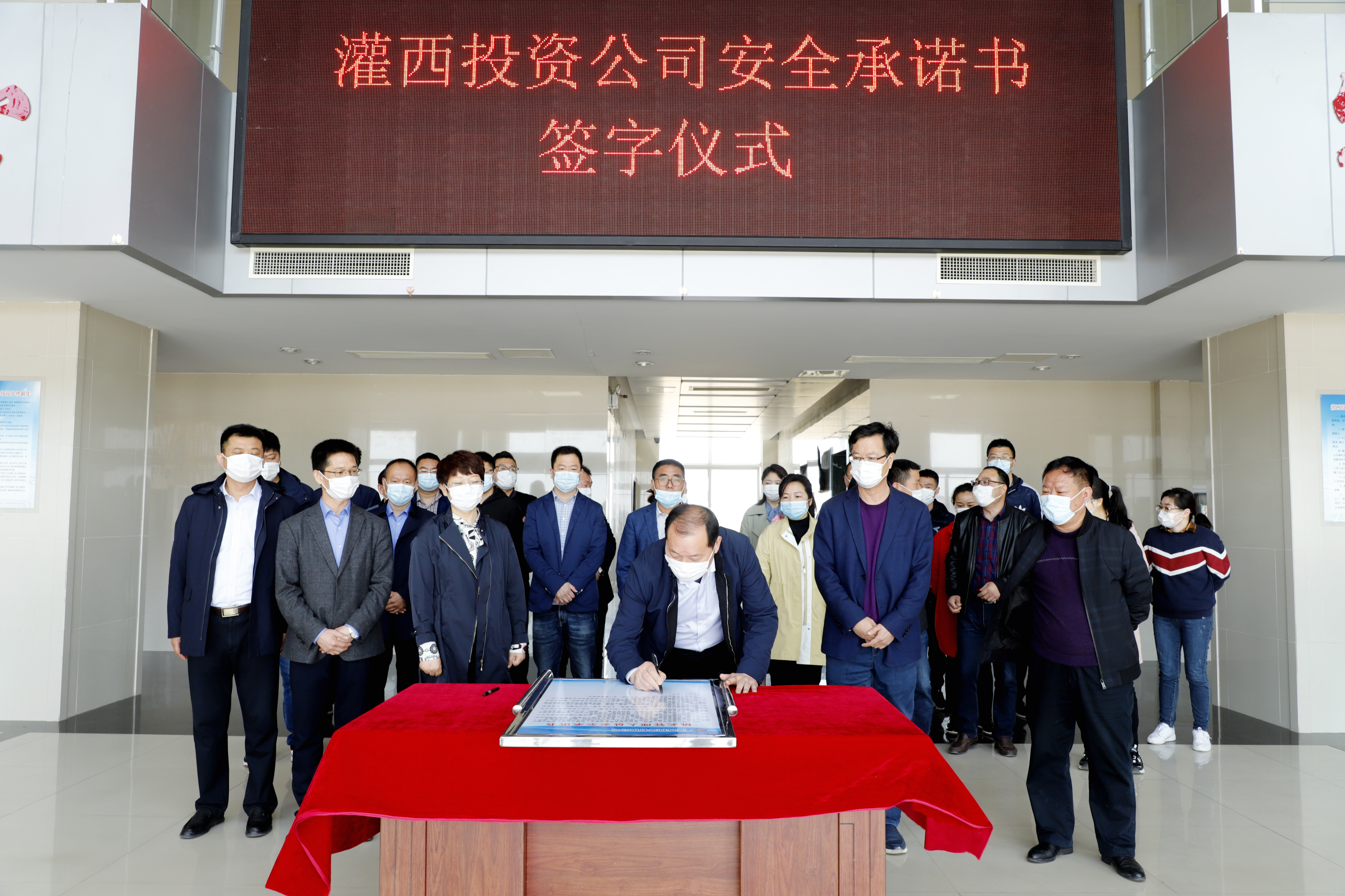 為確保安全生產(chǎn)工作的落實(shí),4月28日上午,灌西公司舉行了安全生產(chǎn)承諾書簽字儀式。在布置一新的簽字現(xiàn)場(chǎng),黨委書記、董事長(zhǎng)、總經(jīng)理李國(guó)文帶頭在承諾書上鄭重地簽下了自己的名字。