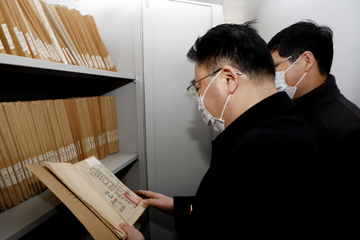 戴鴻鳴一行先后到宵洋五灌河碼頭、公濟(jì)公司遺址、機(jī)關(guān)檔案室等地實(shí)地調(diào)研。在宵洋五灌河碼頭參觀了新建的黨員活動室和職工食堂,并仔細(xì)詢問了炊事員每天伙食情況、用餐人數(shù)、用餐時間等。在公濟(jì)公司遺址查看建筑保存情況,并聽取了公濟(jì)公司遺址相關(guān)保護(hù)情況的介紹。在機(jī)關(guān)檔案室仔細(xì)參看翻閱了灌西歷史檔案。隨后在機(jī)關(guān)三樓會議室召開集團(tuán)公司黨建工作灌西調(diào)研會。