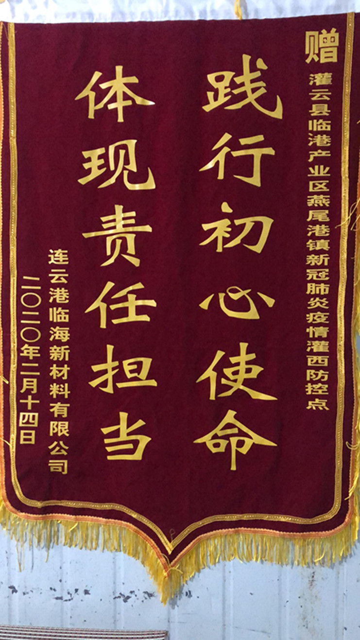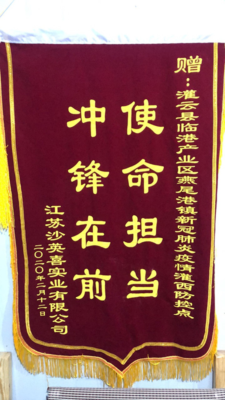 “非常感謝你們對我們?nèi)夜镜氖刈o(hù),為我們廣大職工筑牢了一道防疫情的銅墻鐵壁,你們辛苦了!”近日,連云港臨海新材、灌云利民再生資源、江蘇沙英喜三家公司分別為新冠肺炎疫情灌西防控點(diǎn)值守人員送來三面錦旗,感謝灌西投資公司值守人員在疫情期間為疫情防控工作作出的貢獻(xiàn)。