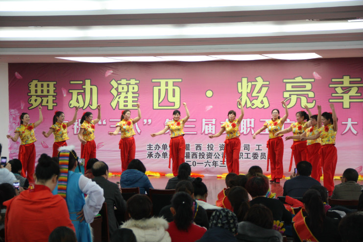 為了迎接第106個國際“三八”婦女節(jié)的到來,3月8日上午,灌西投資公司舉辦了“舞動灌西·炫亮幸福”第三屆女職工廣場舞大賽。這次比賽邀請了尚慶葉等七名集團公司各單位原女工主任擔任評委,做到了公平、公正,比賽成績充分顯示了各自的真實水平。來自全公司各單位共11支參賽隊伍給大家來了精彩的表演,觀看比賽的職工群眾200余人。