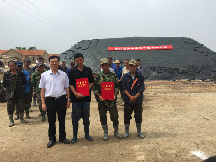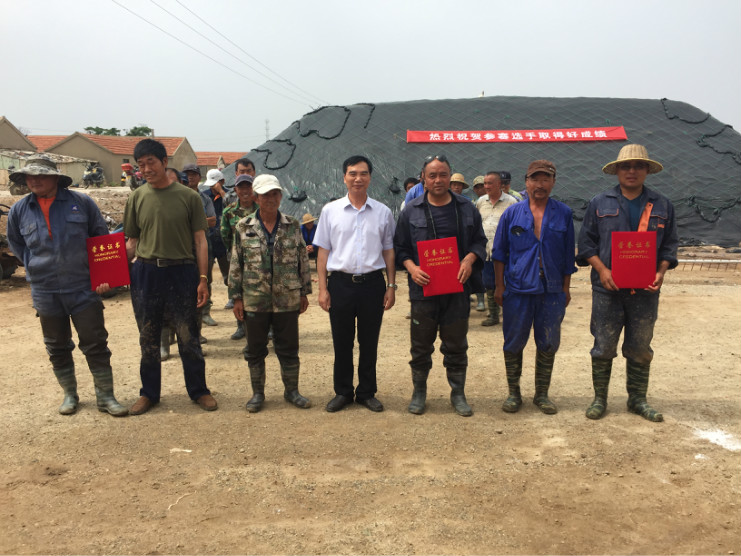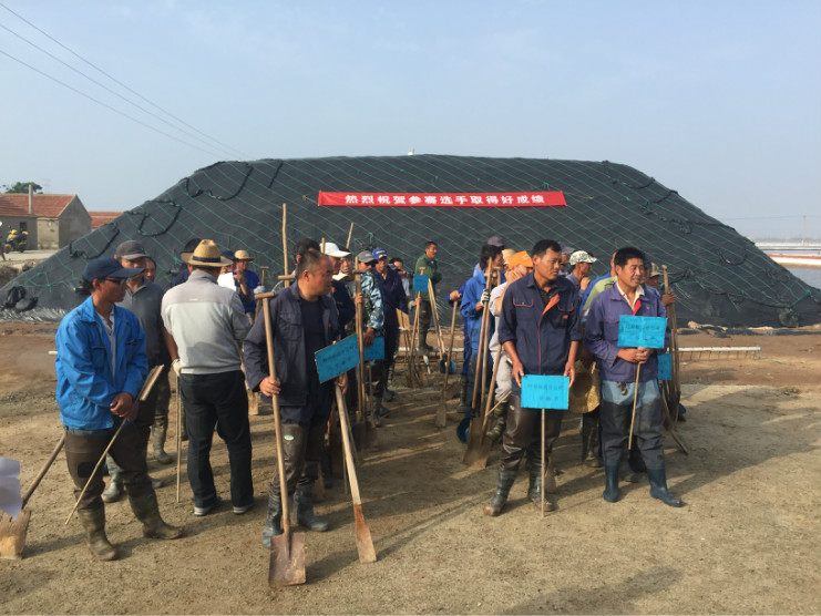 比賽開始前,生產(chǎn)服務公司經(jīng)理王緒前首先就天溝建設要求、評分標準等事項進行了現(xiàn)場說明。7點20分,隨著裁判員的一聲令下,比賽正式開始。參賽選手們按照賽前抓鬮序號,迅速投入到比賽中。賽場上,每一組選手都分工明確,澆水、翻泥、踩實、做埝、整平一氣呵成,大家都表現(xiàn)的極為熟練,充分展示了參賽選手扎實的基本功。比賽中,三位裁判在比賽場地來回巡查,認真記錄每一組參賽選手的勞動過程,力求做到公平、公正。9點20分,隨著最后一組選手的工作完成,比賽正式結(jié)束。隨即,三位裁判又根據(jù)比賽過程中的記錄情況結(jié)合最終工程質(zhì)量對每一參賽小組進行綜合評分。最終,來自埒南制鹽分公司的章保衛(wèi)、高明成榮獲比賽第一名;江海兵、張春連以及尹步松、汪禮兵兩組選手榮獲第二名;新河制鹽分公司朱明、戴繼明,郁雷敏、李正軍,楊春旭、史春海三組選手榮獲第三名。