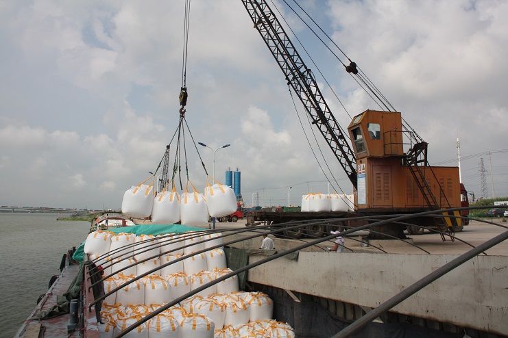 8月3日上午9點(diǎn)左右,當(dāng)筆者來(lái)到宵洋物流公司五灌河碼頭時(shí),這里已經(jīng)到處是工人們忙碌的身影,吊機(jī)揮舞巨臂、車輛川流不息、現(xiàn)場(chǎng)管理者來(lái)回奔忙指揮、作業(yè)人員揮汗如雨緊張忙碌。