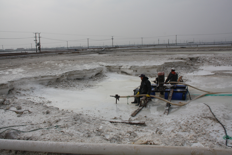 2月6日上午,在新河制鹽分公司的九班,我們看到工人們正在下馬格內(nèi)和格,為盡快灌池生產(chǎn)打好基礎(chǔ),在十班,工人有的正在清除硫酸鈣,有的修整結(jié)晶池埝,而在八班的灘頭,一臺挖掘機(jī)正在鹽廩上裝鹽銷售,日曬制鹽公司廣大員工掀起春季生產(chǎn)熱潮,處處都是忙碌景象。據(jù)了解,隨著市場回暖,日曬制鹽公司的原鹽銷售較前兩年同期無論是在數(shù)量上,還是在價格上都有所增長。為了抓住這一難得的銷售機(jī)遇,不斷擴(kuò)大市場占有率,公司計劃組織兩個制鹽分公司在近期開展扒鹽工作,以確保原鹽銷售工作不中斷。為此,各生產(chǎn)單位緊緊圍繞這一工作重心,在抓好日常生產(chǎn)的同時,精心做好扒鹽前的各項(xiàng)準(zhǔn)備工作,努力確保扒鹽工作正常有序開展。與此同時,部分尚不具備扒鹽條件的班組則抓緊時間做好除硫池清理、撤格池板的整平以及土工布更換等工作,為春季生產(chǎn)做好各項(xiàng)準(zhǔn)備工作。(封楊)