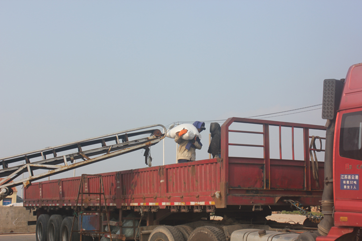 最后我們來到了筑包基地,流水線上工人分工明確,有的負(fù)責(zé)裝袋,有的負(fù)責(zé)封口,有的負(fù)責(zé)將其放上傳送帶。傳送帶的另一端,兩名工人站在貨車上,輪流將傳送上來的鹽包整齊的擺放在車廂里。