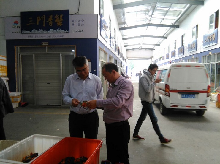 在三門和溫嶺,考察組一行分別參觀了“海水綜合養(yǎng)殖”池塘、貝類育苗基地、沙蠶養(yǎng)殖基地,三門青蟹批發(fā)市場,詳細了解青蟹、血蛤養(yǎng)殖、銷售情況,養(yǎng)殖規(guī)模、養(yǎng)殖效益,并分別同養(yǎng)殖大戶進行了現(xiàn)場交流。王德志董事長在考察時指出:灌西養(yǎng)殖面積大,但整體上還屬于粗放型養(yǎng)殖階段,無論是養(yǎng)殖品種、養(yǎng)殖地畝單價都有很大的上升空間,我們有必要充分借鑒浙江沿海養(yǎng)殖的先進經驗,在海水養(yǎng)殖上實現(xiàn)產品多樣化、精養(yǎng)化、降低養(yǎng)殖風險,努力提高池塘發(fā)包地畝單價,實現(xiàn)養(yǎng)殖效益的再提升。據了解,浙江沿海地區(qū)近年來,通過大引進、大調整、大開發(fā),養(yǎng)殖業(yè)風生水起。三門養(yǎng)殖塘面積達9萬多畝,隨著養(yǎng)殖模式轉型,品牌提升。最明顯的就是養(yǎng)殖地畝費增幅明顯,如今池塘地畝費已在3000-4000元之間,先后獲得中國青蟹之鄉(xiāng),浙江對蝦之鄉(xiāng)等榮譽。