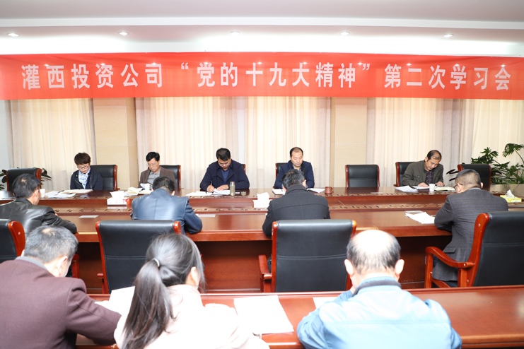 11月10日,灌西投資公司黨委召開“黨的十九大精神”第二次學習會暨支部書記工作例會,公司領導王德志、李國文、古浩光、王宏,各支部書記、黨群部門人員及掛職基層支部副書記年輕管理人員參加會議。