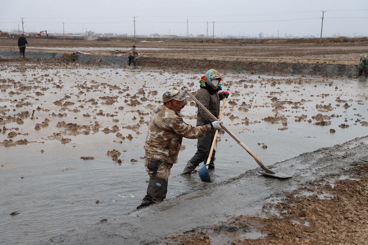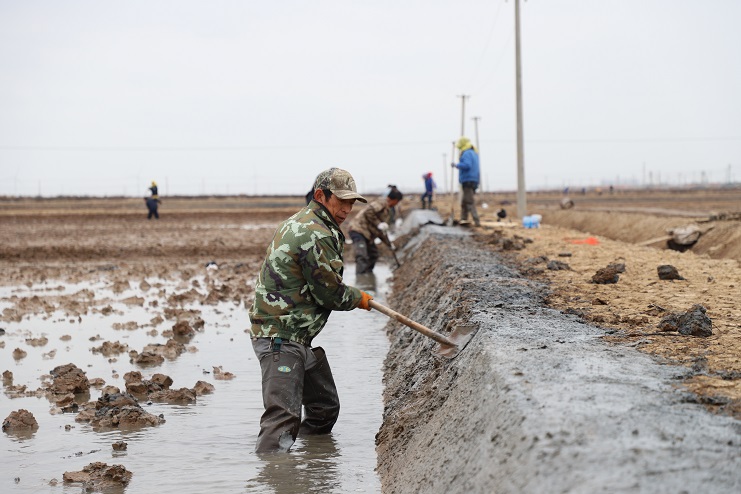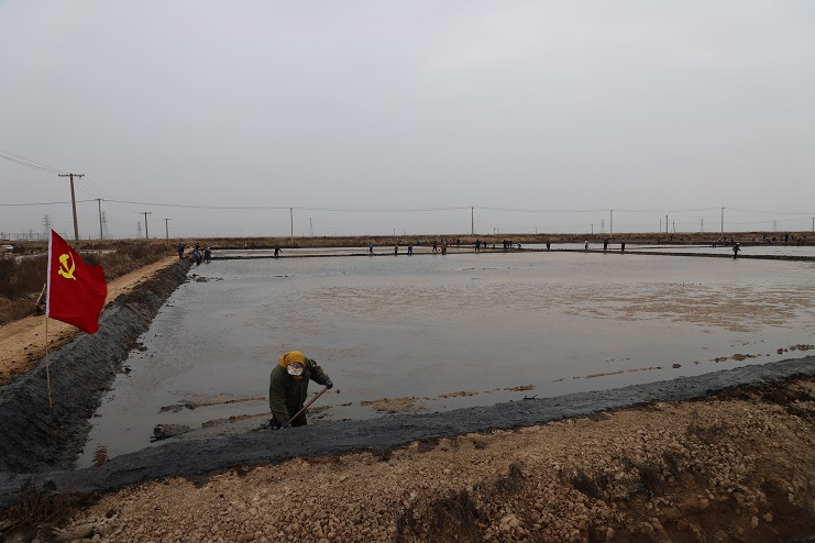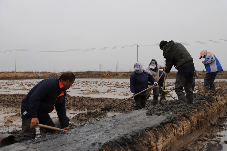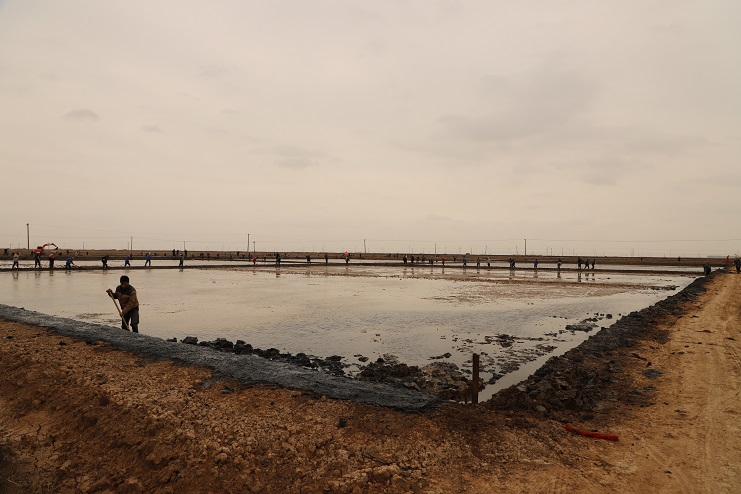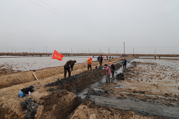 11月29日上午,雖然天氣寒冷,但是在海鹽基地新改造的制鹵灘上,卻到處是一派火熱的勞動景象,參加“大會戰(zhàn)”的工人多達100余人,只見他們有的潑水,有的鏟泥,有的撈溝,有的做埝,大家分工協(xié)作。據(jù)了解,為了提高海水制鹵能力,確保海鹽產(chǎn)量,今年公司專門對海鹽基地部分廢棄灘地進行了改造,以進一步增加制鹵面積。近期,隨著改造工程接近尾聲,公司又組織精干力量對新改造灘地繼續(xù)進行修整,以確保新建的制鹵灘地能夠盡快投入使用,為明年海鹽生產(chǎn)工作的正常有序開展奠定扎實的基礎(chǔ)。