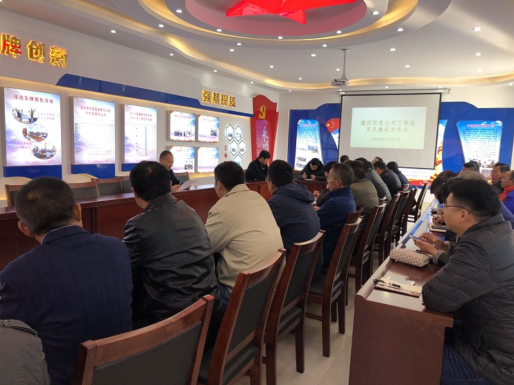 為進一步加強公司黨風(fēng)廉政建設(shè),推進企務(wù)公開制度的落實,強化職工參與企業(yè)管理與監(jiān)督的力度。近日,灌西投資公司召開三季度黨風(fēng)廉政建設(shè)發(fā)布會,由老機關(guān)片區(qū)、日曬制鹽兩大片區(qū)基層派駐監(jiān)察室主任分進行發(fā)布,各片區(qū)所有管理人員以及部分黨員班組長參加發(fā)布會。
