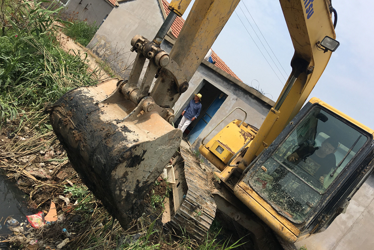 "各項(xiàng)防汛工作中,當(dāng)數(shù)中二圩排水道堵塞問(wèn)題最為突出,由于之前的燕尾港鎮(zhèn)拆遷,大量拆遷戶涌入灌西鹽場(chǎng)中二圩地區(qū)生活,違建現(xiàn)象嚴(yán)重,各種建筑垃圾和白色垃圾隨處堆放,排水系統(tǒng)深受其害。為方便職工群眾生活起居,灌西公司對(duì)中二圩地區(qū)排水道進(jìn)行疏通清理,以便安度汛期。”清理現(xiàn)場(chǎng),," 防汛辦公室主任楊善兵說(shuō)道,只見大小挖機(jī)全力施工,對(duì)于大挖機(jī)不好進(jìn)入的居民區(qū)內(nèi)部小溝小道則由小挖機(jī)專門清理,對(duì)于復(fù)雜地形機(jī)械難以進(jìn)入的地方只能人工清理,務(wù)求做到全面徹底,不留死角。