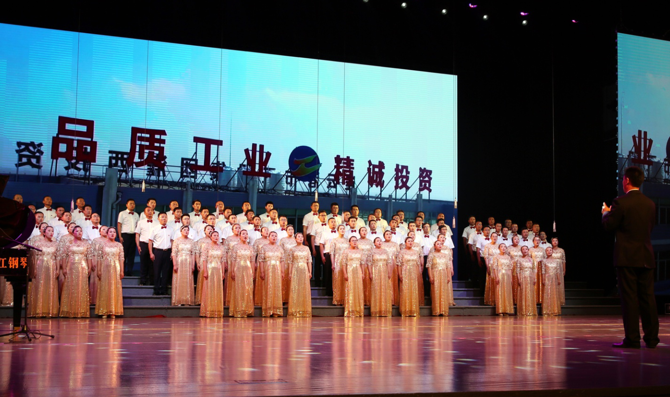 “風(fēng)在吼,馬在叫,黃河在咆哮……”嘹亮的歌聲在市藝術(shù)中心舞臺上響起, 6月28日下午,集團公司2019年“感黨恩、頌祖國、贊工投”大合唱比賽在此隆重舉行,灌西公司百人合唱團獲得二等獎,集團黨委書記、董事長楊龍為灌西合唱團頒發(fā)獎杯。