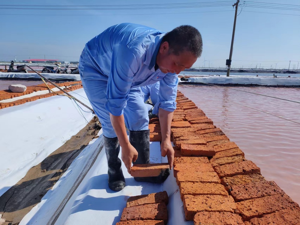 鏖戰(zhàn)酷暑,保目標(biāo)。當(dāng)前,正是原鹽生產(chǎn)的關(guān)鍵時(shí)期,面對(duì)高溫酷暑的嚴(yán)重考驗(yàn),該公司干部職工迎難而上,戰(zhàn)高溫斗酷暑、搶晴天保生產(chǎn),全力投入到高溫生產(chǎn)、保鹽保鹵等工作中,及時(shí)修補(bǔ)塑布,加強(qiáng)塑布收放系統(tǒng)維護(hù)保養(yǎng),隨時(shí)做好拉塑布準(zhǔn)備工作;管理人員以上率下,實(shí)施24小時(shí)現(xiàn)場(chǎng)值班機(jī)制,強(qiáng)化除硫制鹽工藝,抓實(shí)抓細(xì)原料鹵水、結(jié)晶池等源頭過(guò)程管控,確保全年產(chǎn)鹽60萬(wàn)噸。驕陽(yáng)烈日下,萬(wàn)畝銀灘鹵水潺潺、“五彩斑斕”,產(chǎn)業(yè)工人在39℃高溫的戶外勞作,在熱氣蒸人的鹵水鹽田里,揮汗如雨,構(gòu)成了一幅最美的“鹵上芭蕾”。(許東彥)