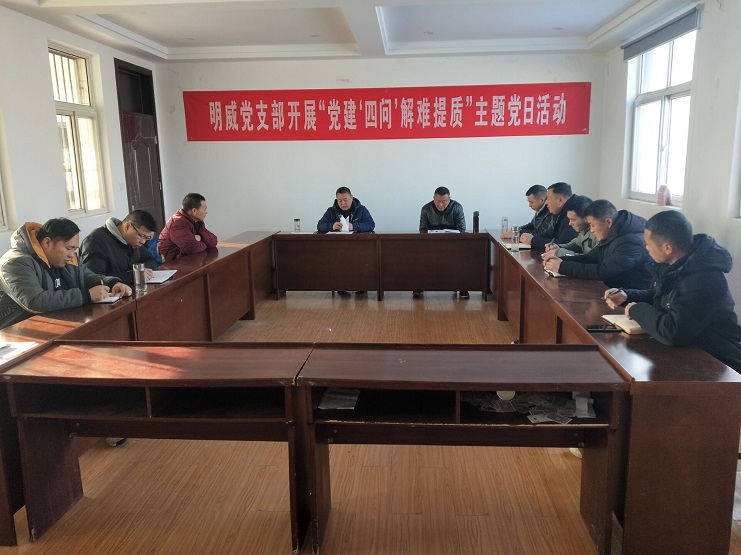 12月22日上午,明威黨支部在三樓活動(dòng)室開(kāi)展“黨建‘四問(wèn)’解難提質(zhì)”主題黨日活動(dòng)。明威黨支部書(shū)記葛高平主持座談,13名黨員及入黨積極份子參加?,F(xiàn)場(chǎng),書(shū)記葛高平首先傳達(dá)了投資公司黨委《關(guān)于開(kāi)展“黨建‘四問(wèn)’解難提質(zhì)”主題黨日活動(dòng)的通知》的文件精神。與會(huì)黨員和入黨積極份子認(rèn)真學(xué)習(xí)文件精神,積極參與討論。