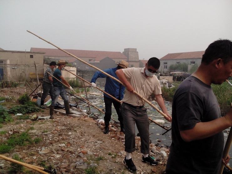 大家早上7點集合后到所在負責(zé)片區(qū):化工區(qū)家屬區(qū)北面的河邊,用耙子打撈河中垃圾。大家不顧高溫天氣、垃圾長期在河中腐蝕的異味,用大耙撈,小耙拉,將河中的垃圾運上來。河中懸浮生長的雜草最難清理,大家齊心協(xié)力,用木筏撐著,找繩子拉,經(jīng)過一上午的忙碌,垃圾被清理了,河道暢通了,為居民創(chuàng)造了整潔的環(huán)境,更為雨季到來時河道的排淡能力發(fā)揮了較大的作用。