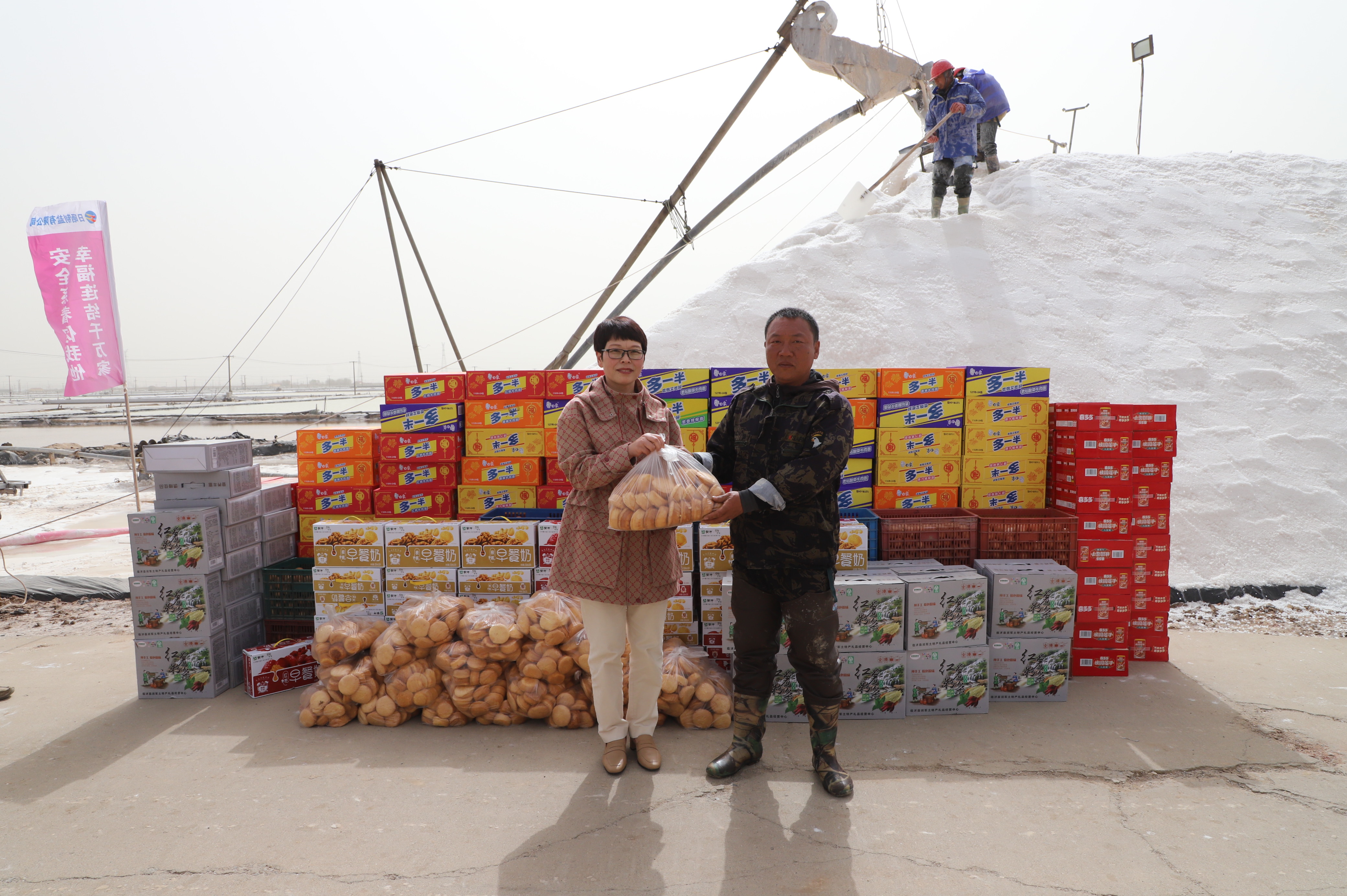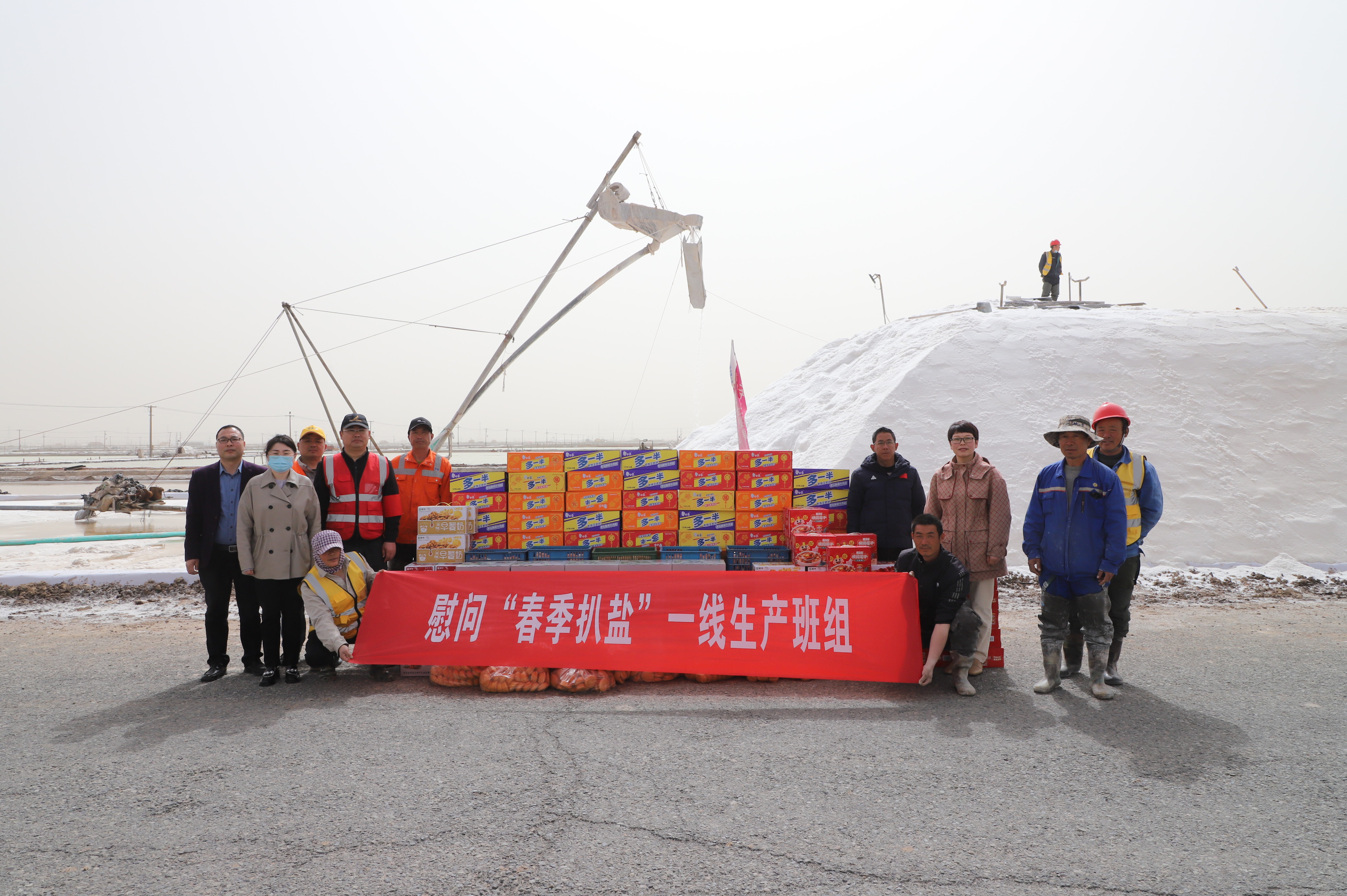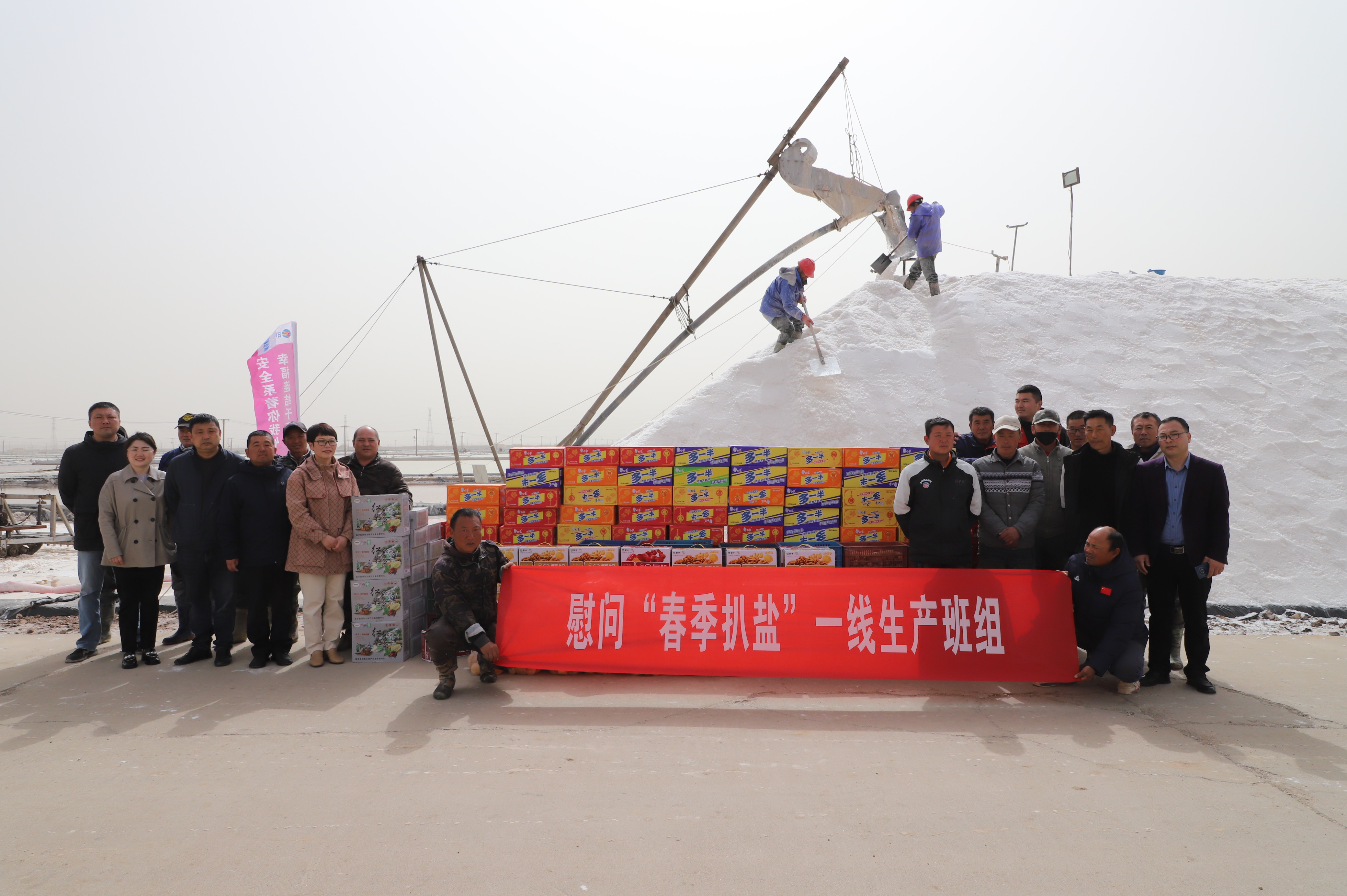 “你們辛苦了,我代表公司來(lái)看望大家?!痹谛潞泳虐嗯c埒南九班,王宏與扒鹽現(xiàn)場(chǎng)職工握手問(wèn)好,感謝他們?cè)谶^(guò)去的一年為日曬制鹽公司的原鹽生產(chǎn)所付出的辛勤努力,叮囑他們一定要落實(shí)落細(xì)扒鹽生產(chǎn)措施,增強(qiáng)責(zé)任感和警覺性,嚴(yán)格執(zhí)行各項(xiàng)規(guī)章制度,切實(shí)保障扒鹽期間的安全生產(chǎn),并送上雞蛋、八寶粥、方便面、牛奶等物品。