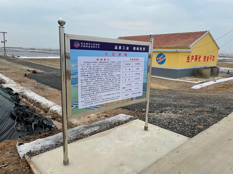 新河制鹽分公司零班,日曬制鹽有限公司“示范班組”,現(xiàn)有職工10人,男7人,女3人,于2012年12月1日建成投產(chǎn),2018年實行“9+1”用工制,2020年試行“8+2”彈性用工制?,F(xiàn)隸屬日曬制鹽有限公司,主要從事工業(yè)鹽的生產(chǎn),目前班組生產(chǎn)面積27公頃,灌池24塊1440公畝,年產(chǎn)鹽量2萬噸,主要利用淮安地區(qū)豐富的地下礦鹵資源,創(chuàng)新制鹽生產(chǎn)模式,節(jié)約土地資源,降低成本,擴大產(chǎn)能,實現(xiàn)高質(zhì)量、高產(chǎn)出、高效益、低本低碳,節(jié)能環(huán)保。